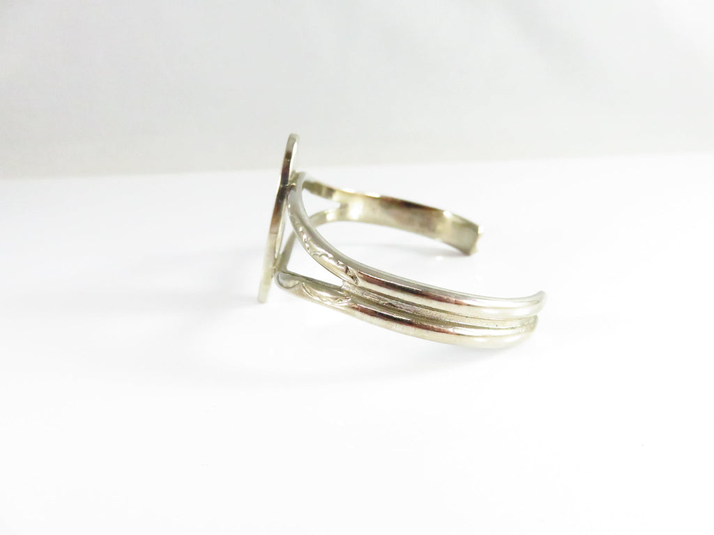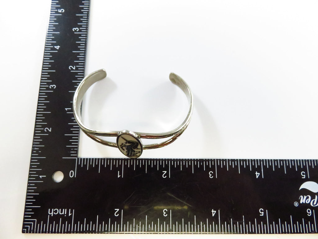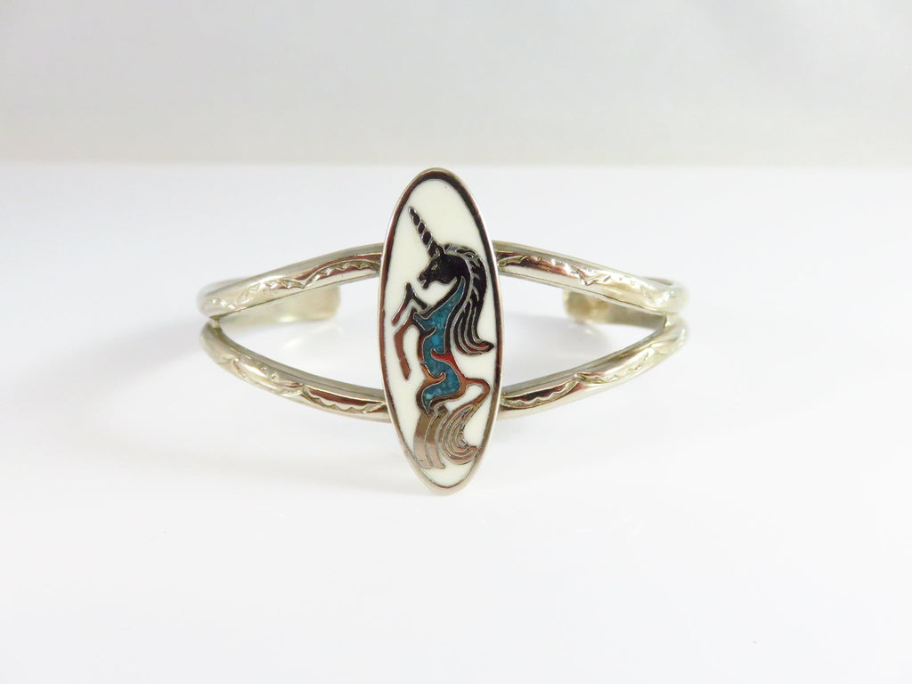 Retro Unicorn Cuff Bracelet White Enamel Crushed Turquoise 6 3/4" Cuff Bracelet