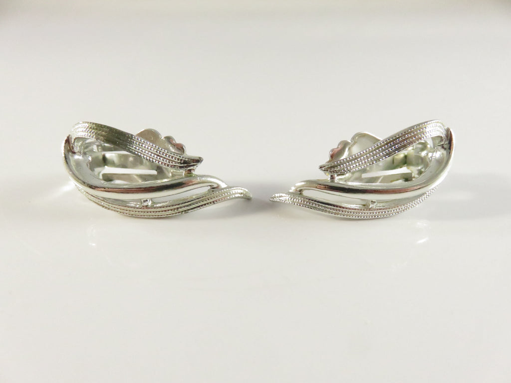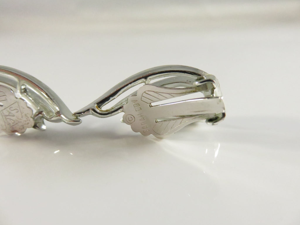 Sarah Coventry Earrings, Sculpted Silver Tone Clip Ons, Vintage