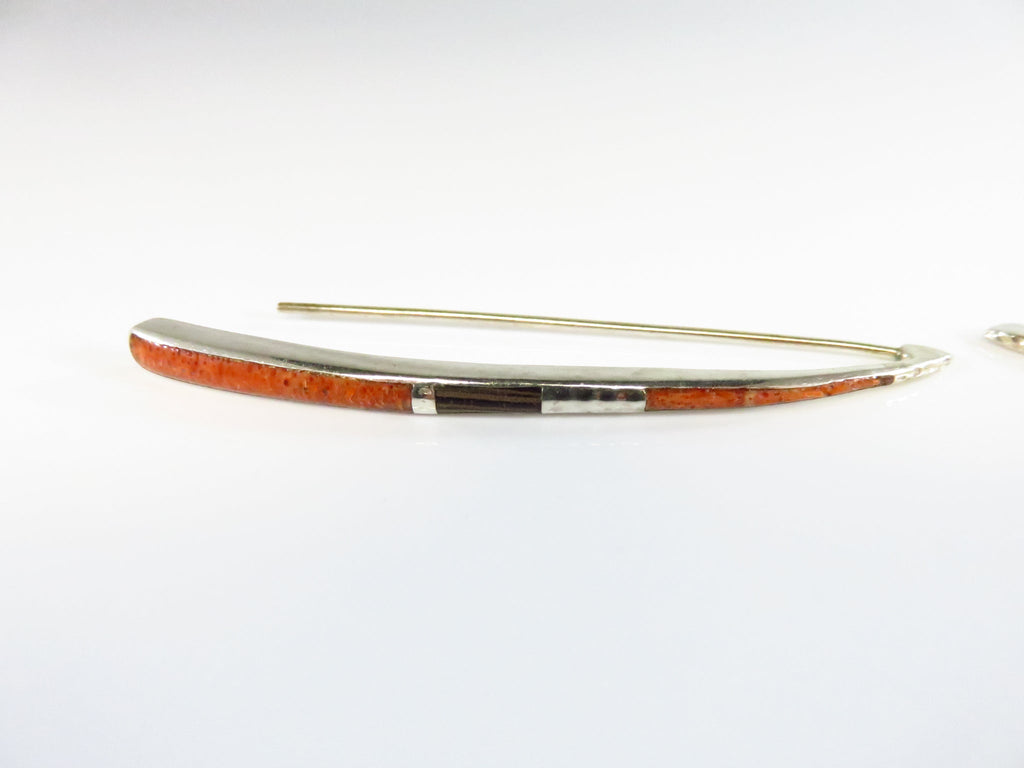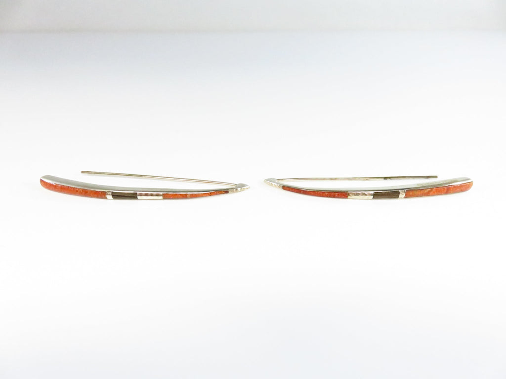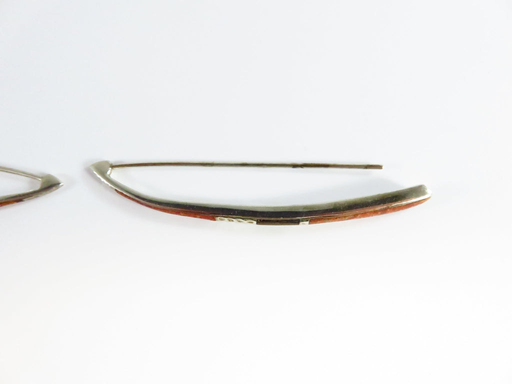 Silpada Sterling Sponge Coral & Wood Inlay Threader Wire Earrings