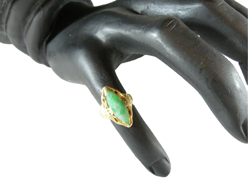 Antique 20K Gold Nephrite Jade (Origin Unknown) Navette Dragon Ring Chinese Export