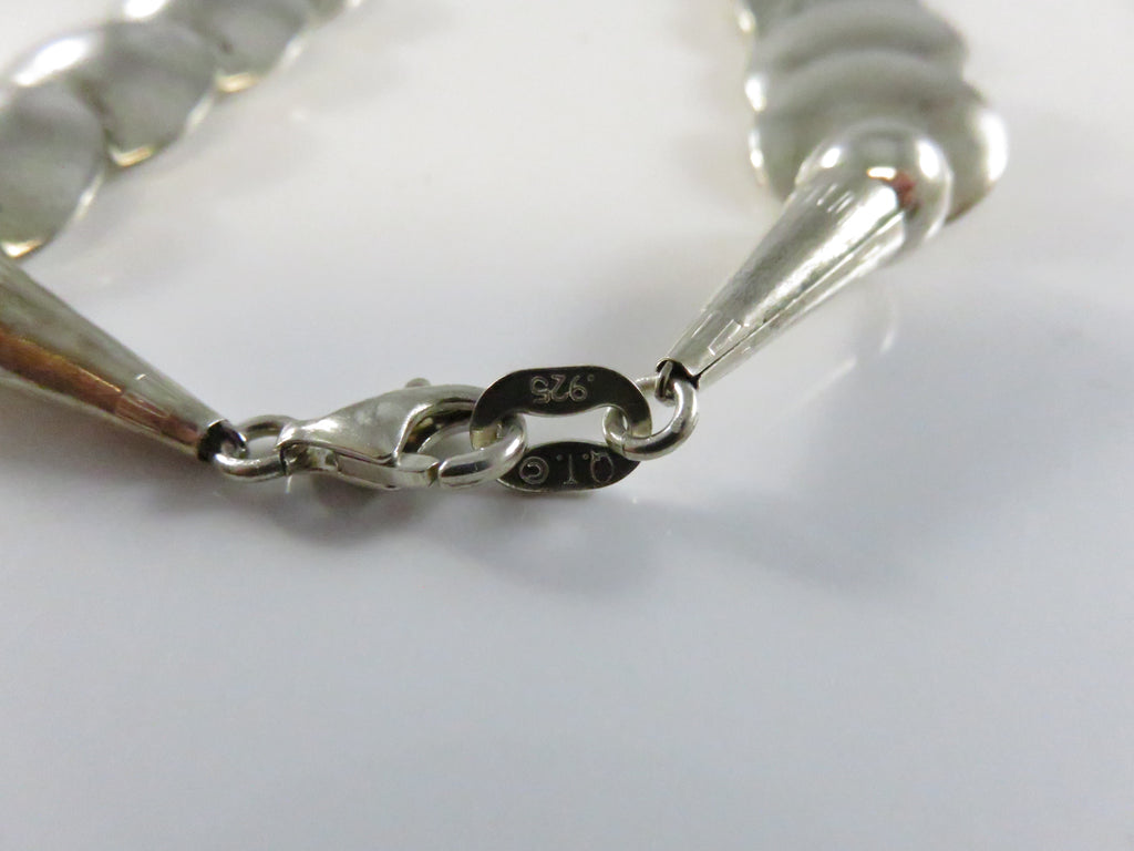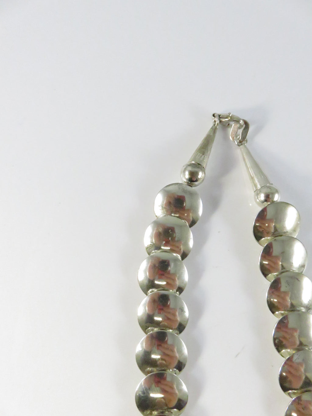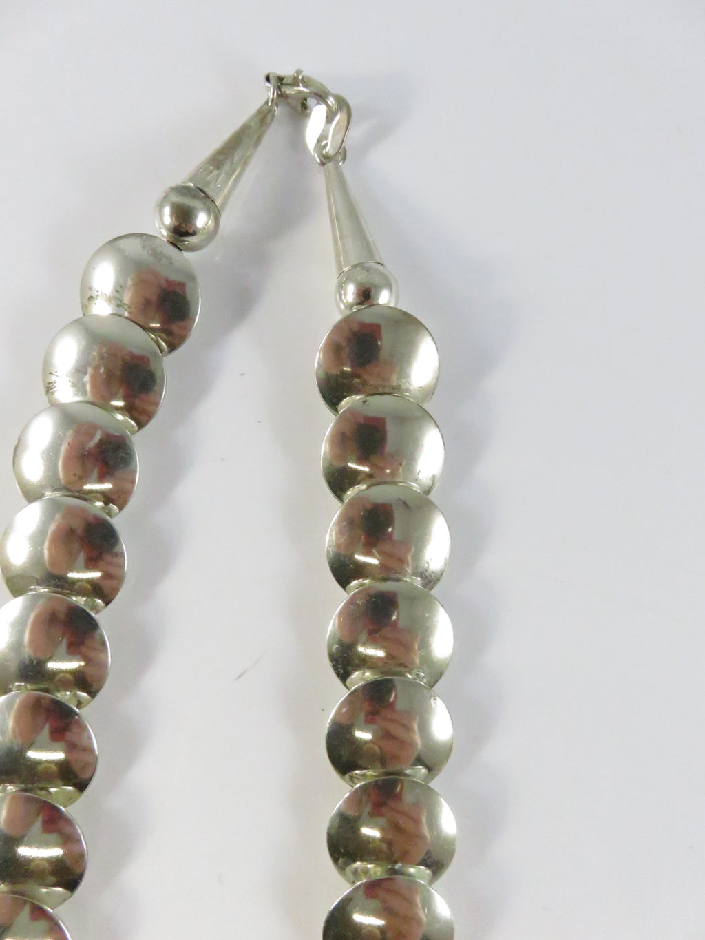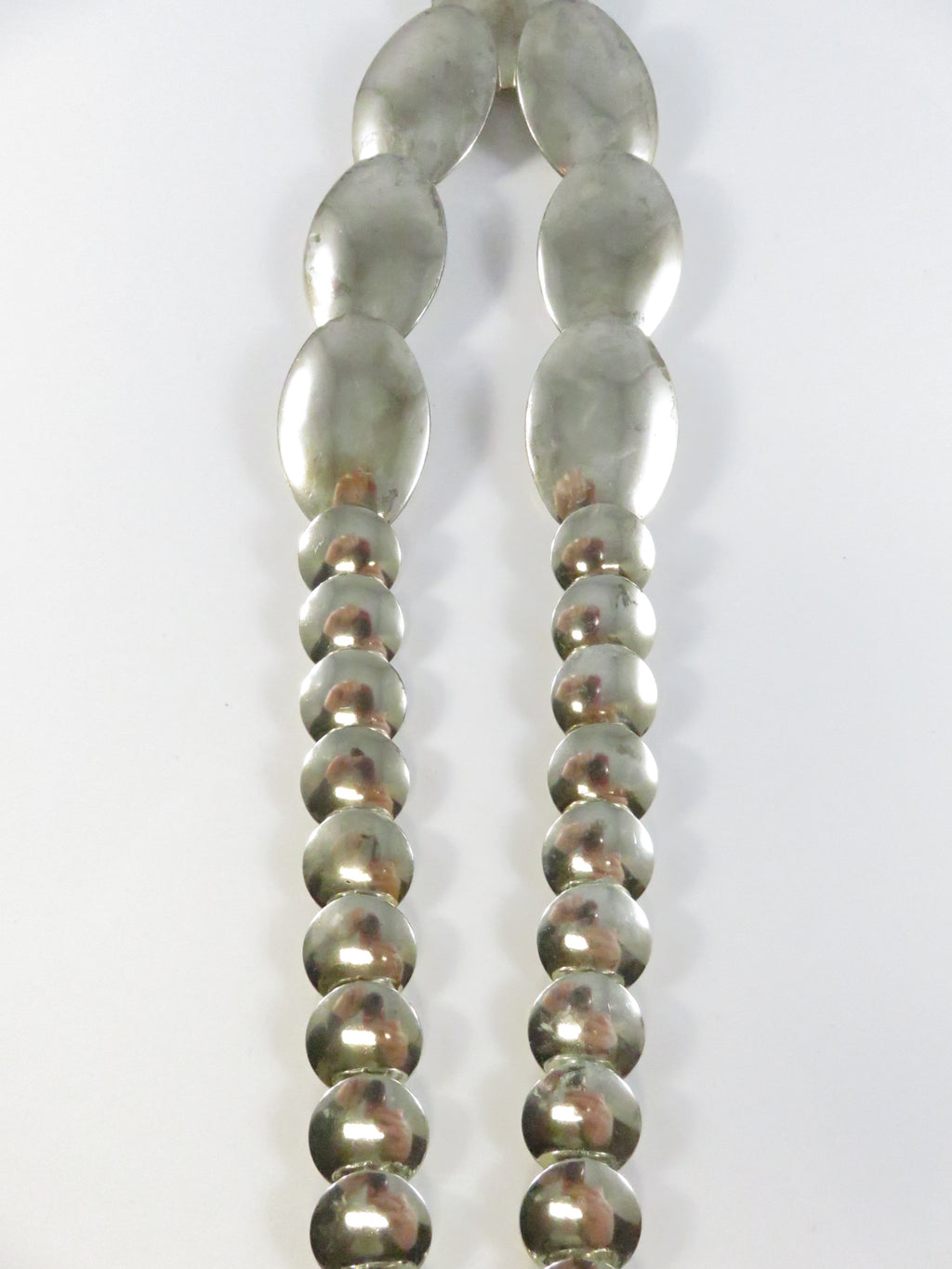 Southwestern Sterling Silver Graduated Pillow Disc Etched Oval Necklace Signed QT Quoc Turquoise 20.25in
