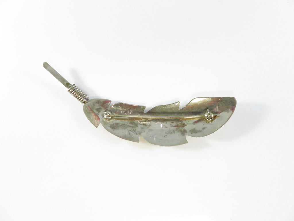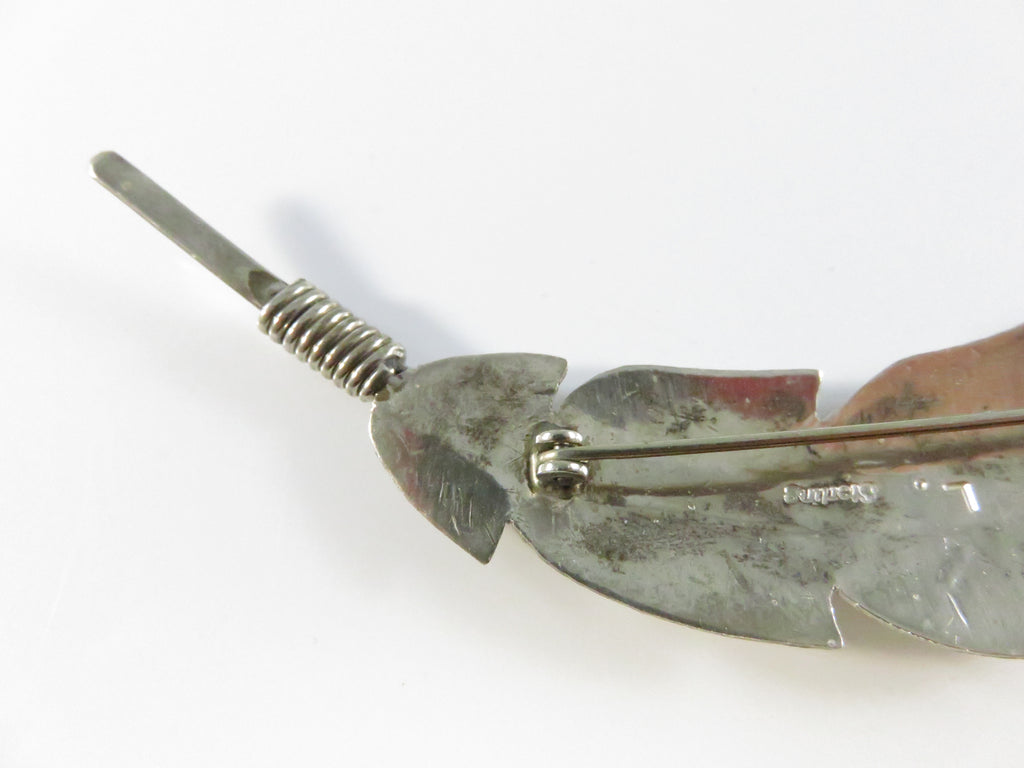 Sterling Feather Form Native American Turquoise Accent Brooch Pin, 10.8 g Mid-Century