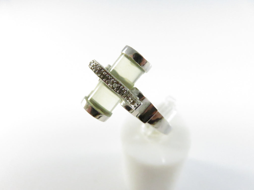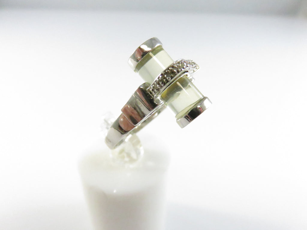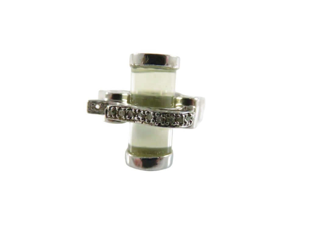 Sterling Silver Elise Adoree Quartz Tube Ring With Diamond Accents 925 RT Size 6.75 Repair Piece