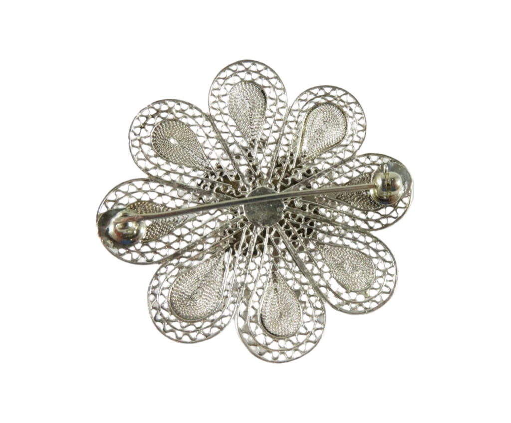 Unusual Lovely 800 Silver Filigree Flower Brooch with Butterfly in the Center