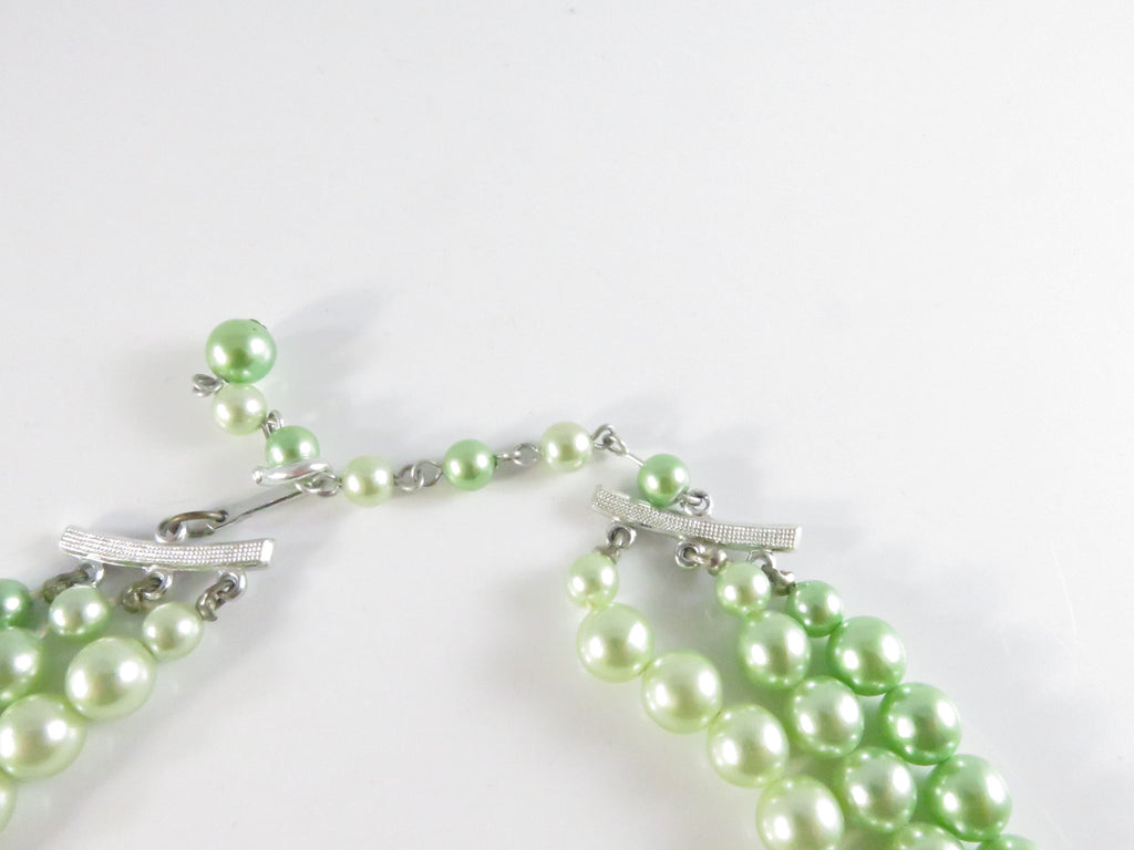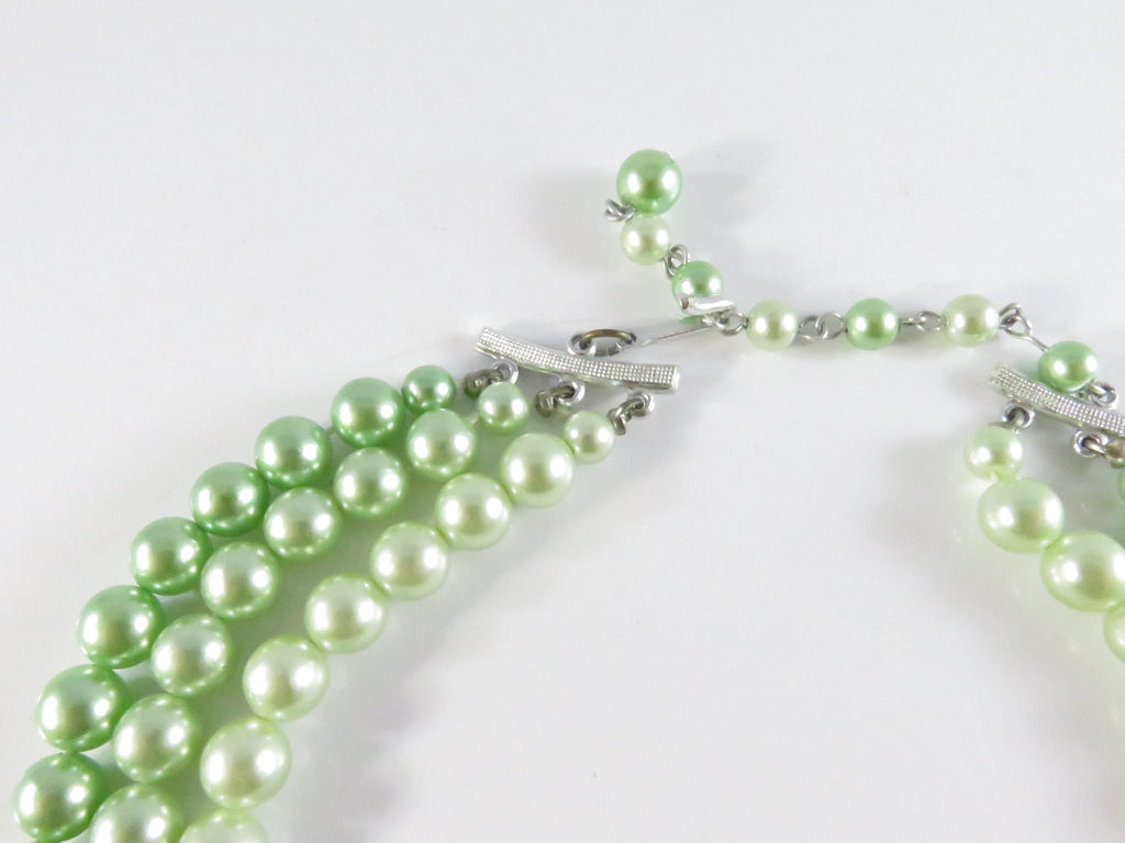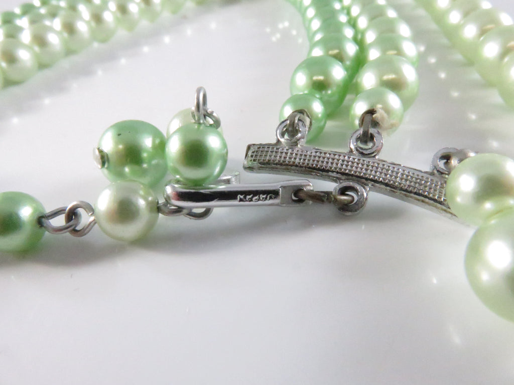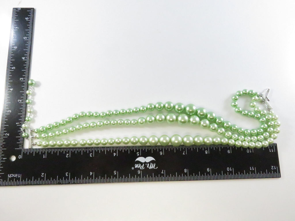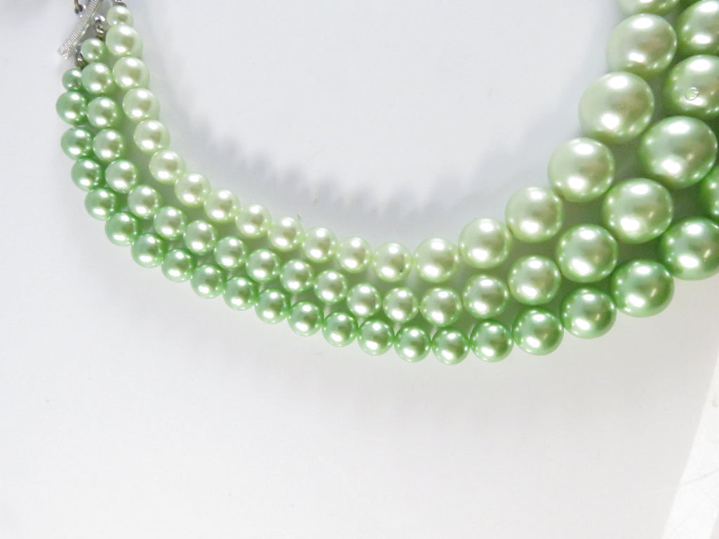 Vintage 1950s Green Faux Pearl Choker Necklace, 3 Strand, Japan