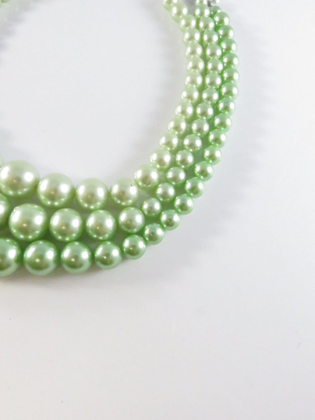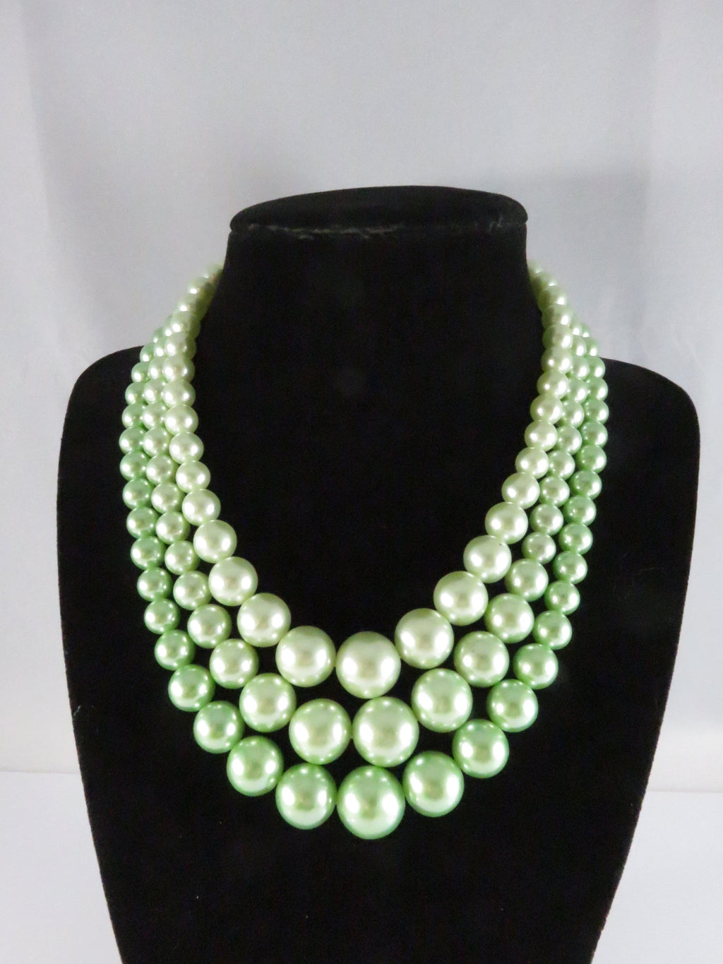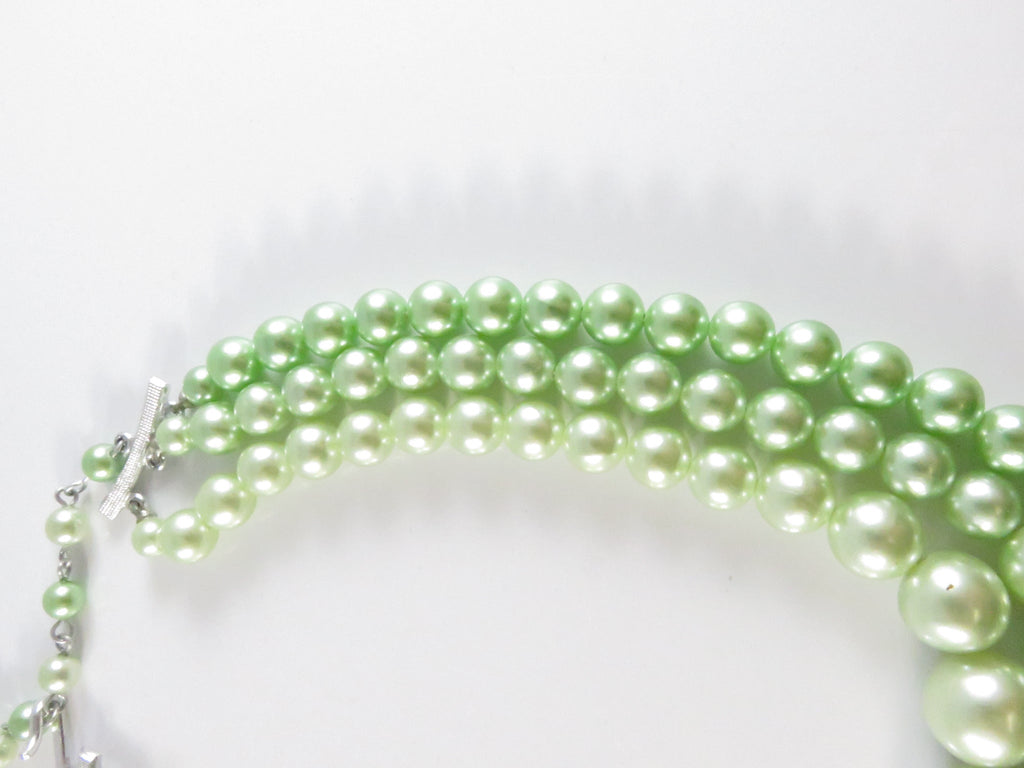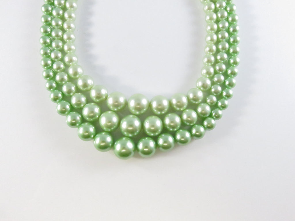 Vintage 1950s Green Faux Pearl Choker Necklace, 3 Strand, Japan