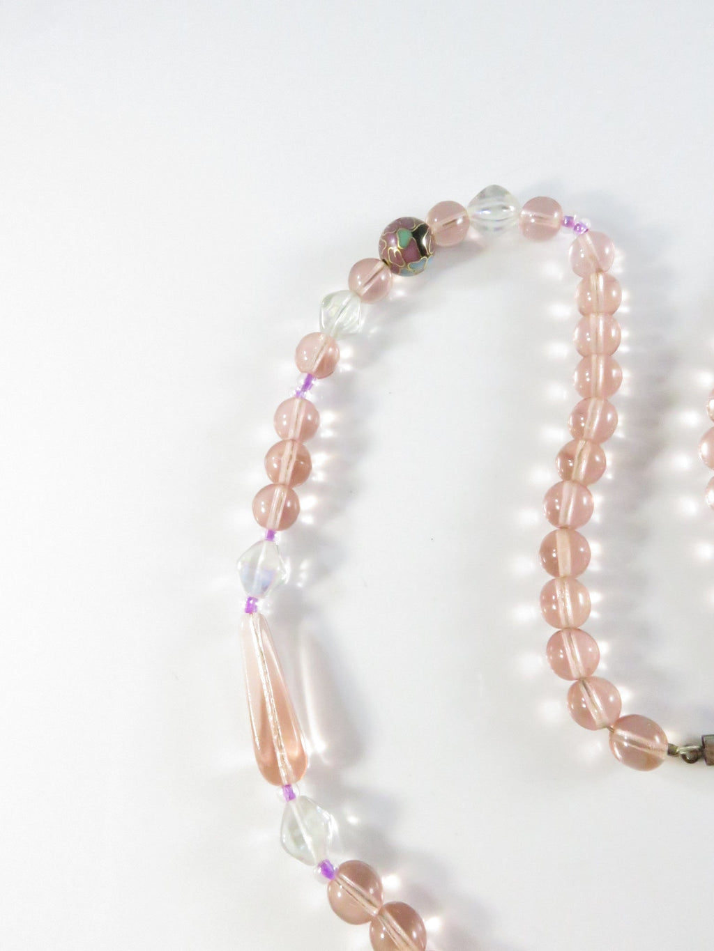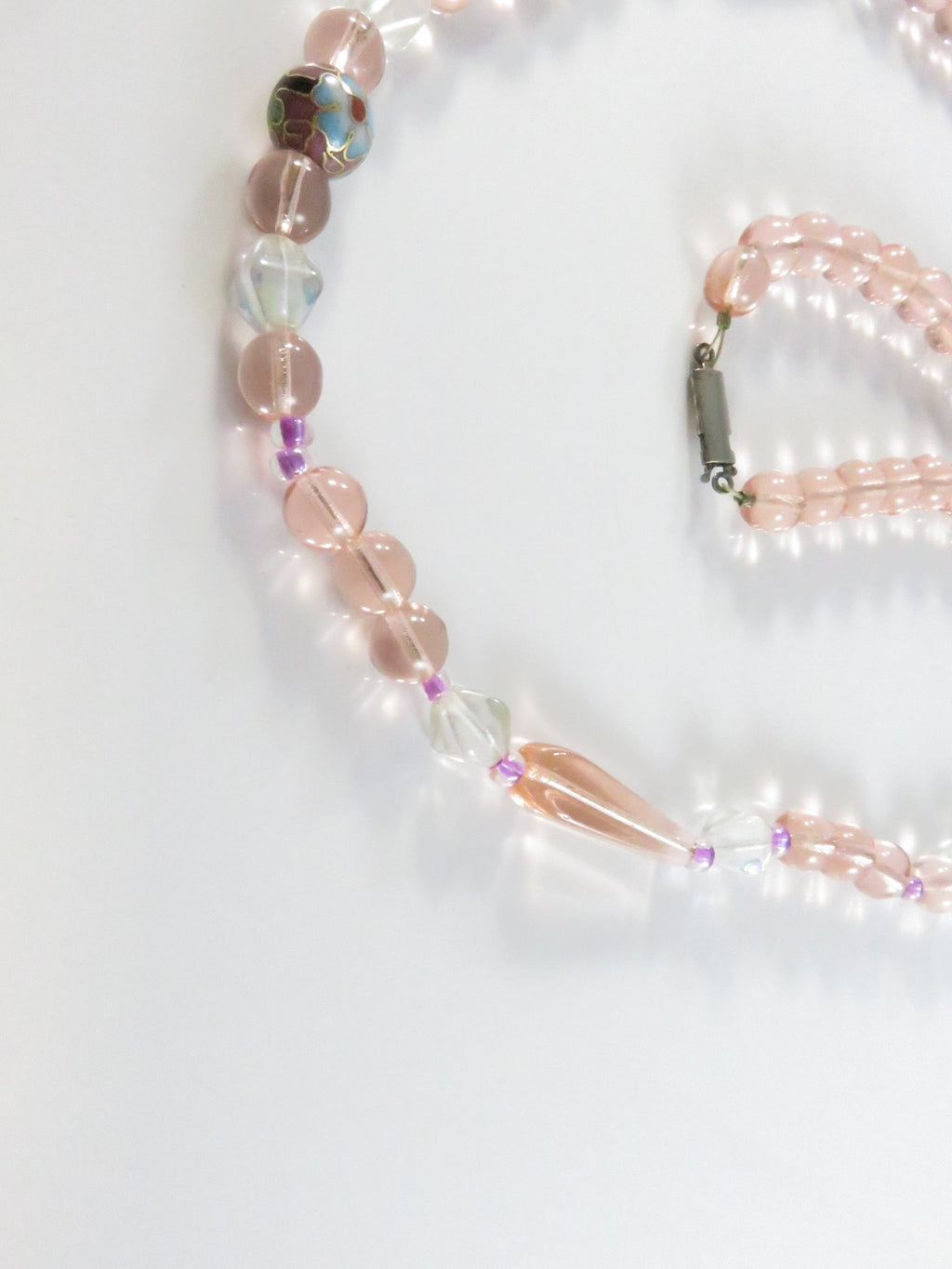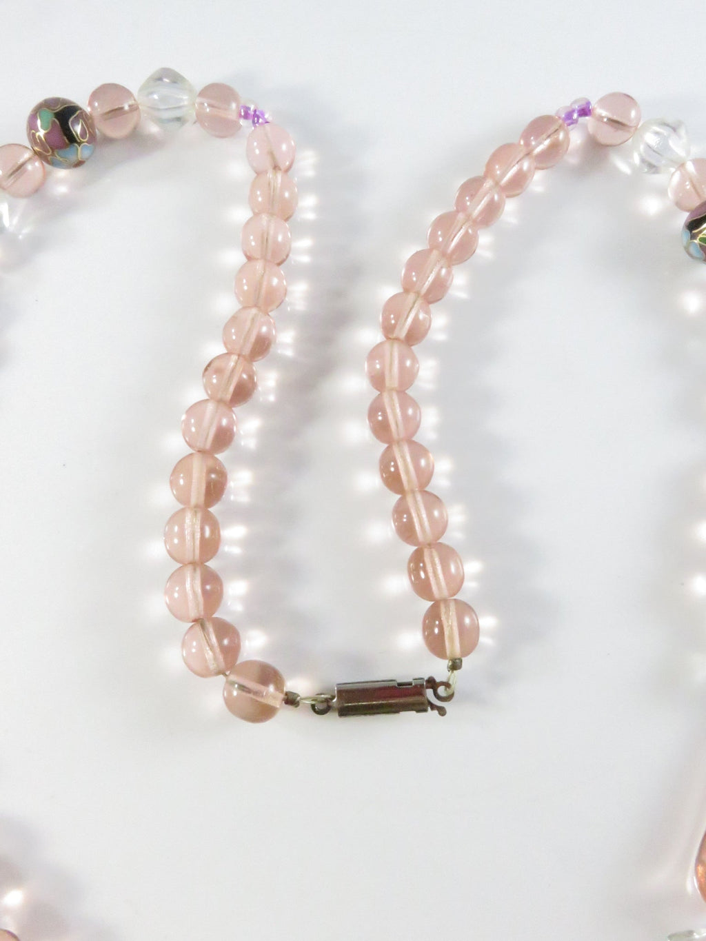 Vintage 1970s Asian Cloisonné & Pink Glass Bead Necklace, 24 Inch Strand