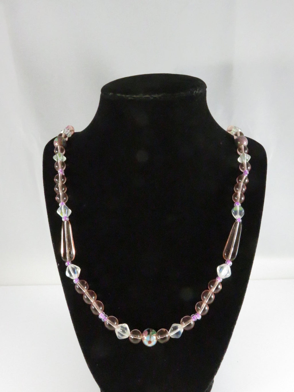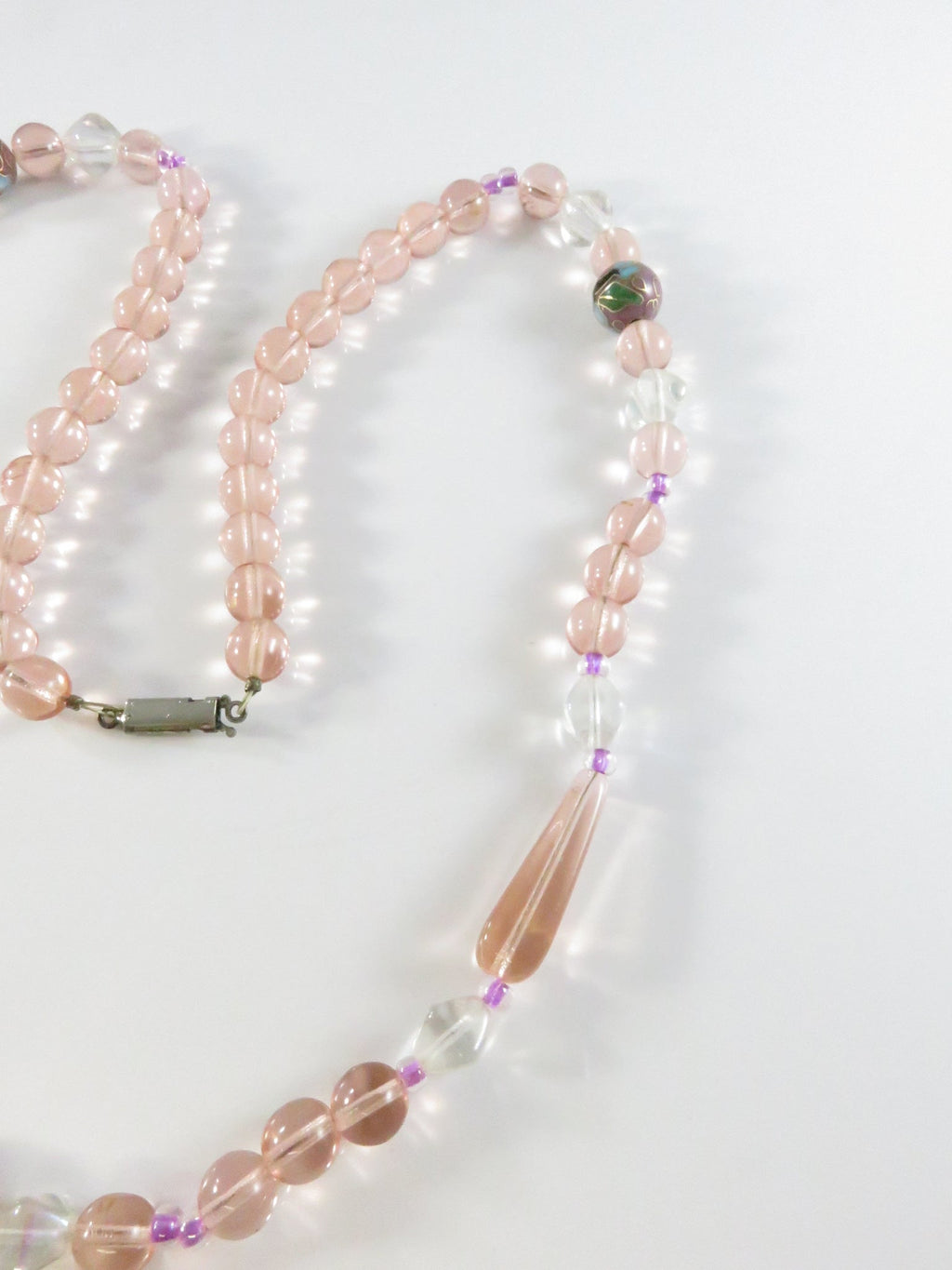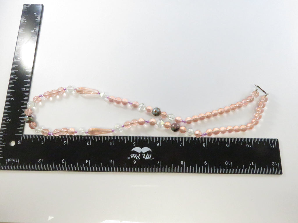 Vintage 1970s Asian Cloisonné & Pink Glass Bead Necklace, 24 Inch Strand