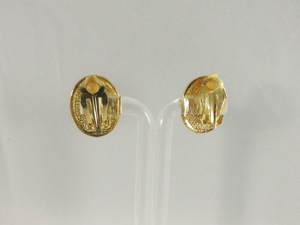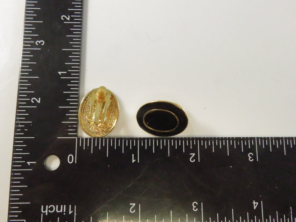 Vintage Black Enamel Clips, Gold Tone Oval Earrings, 7/8", Needs Cushions, Retro Style