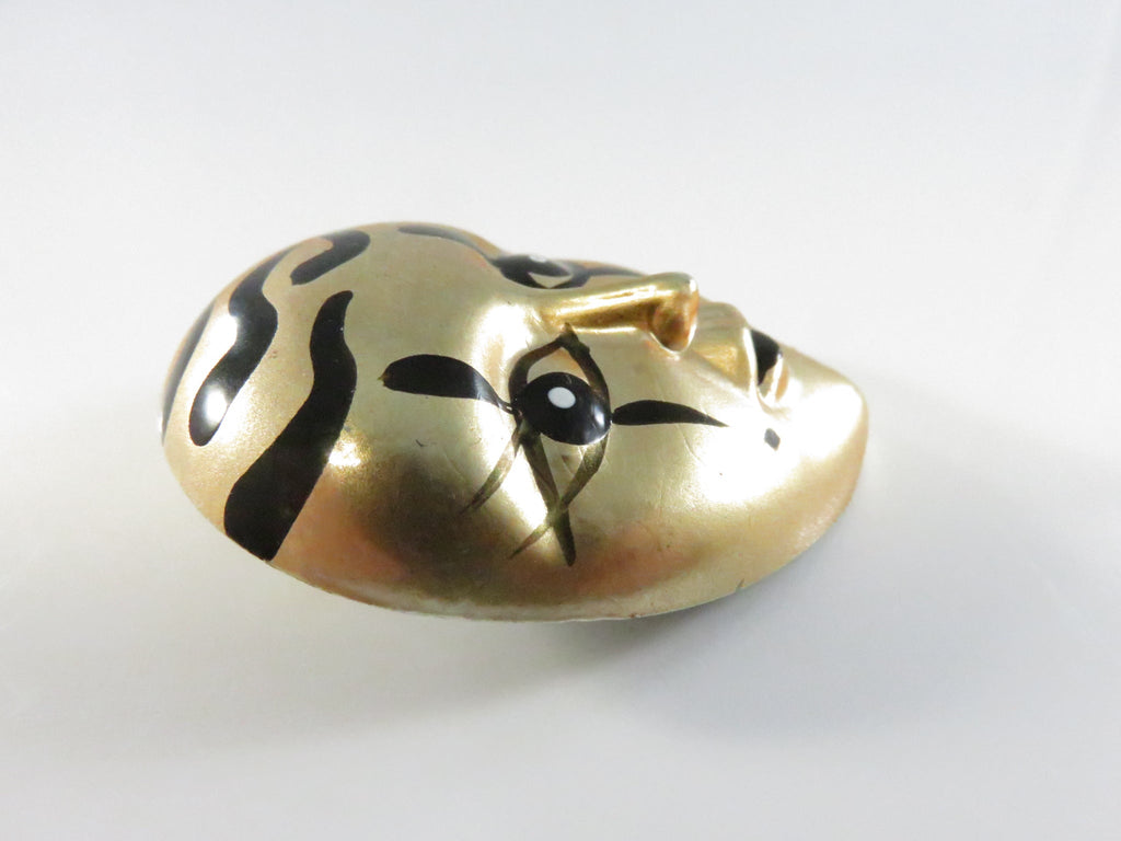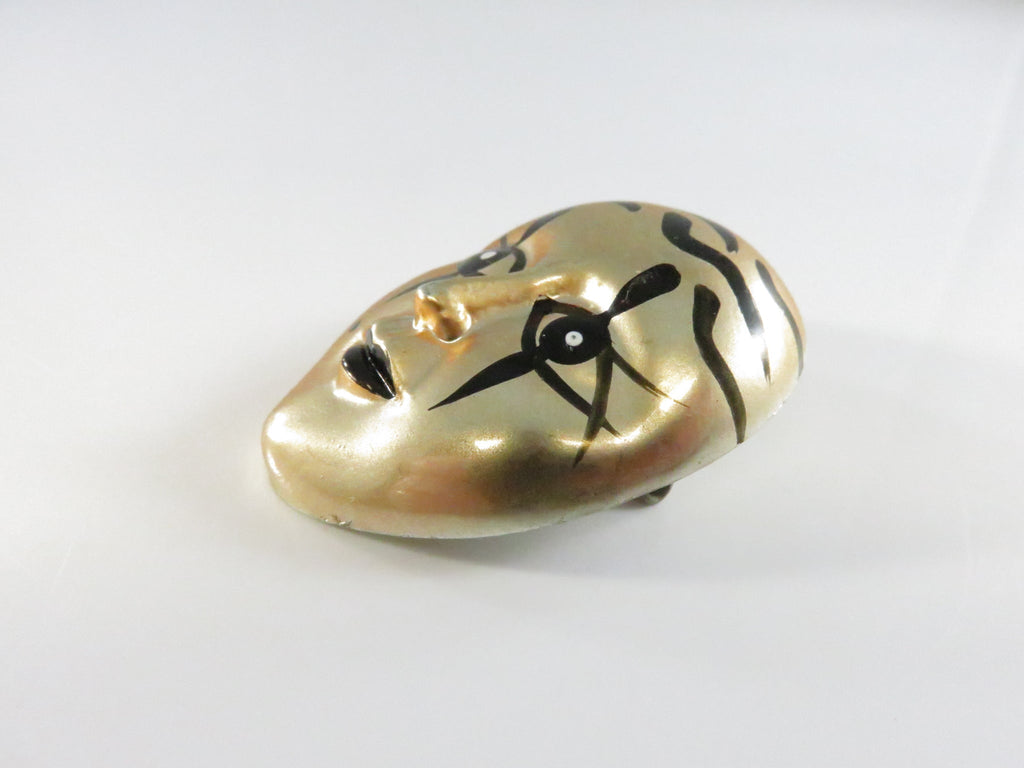 Vintage Gold Tone Pierrot Mask Brooch Pin Made in Taiwan R.O.C. – 2" Tall