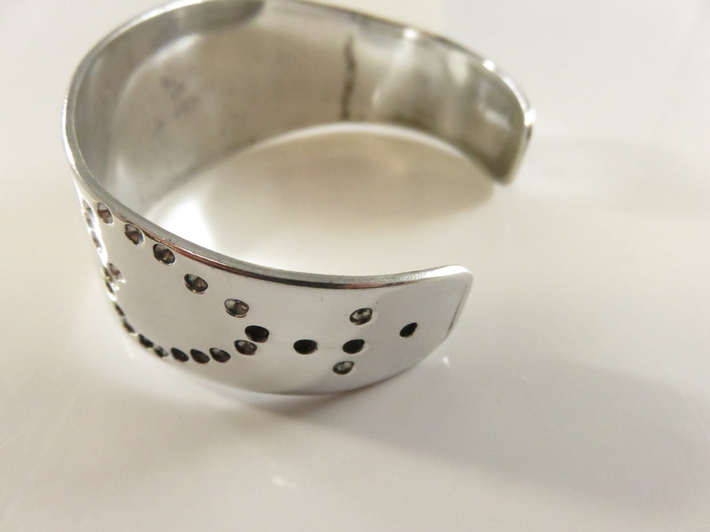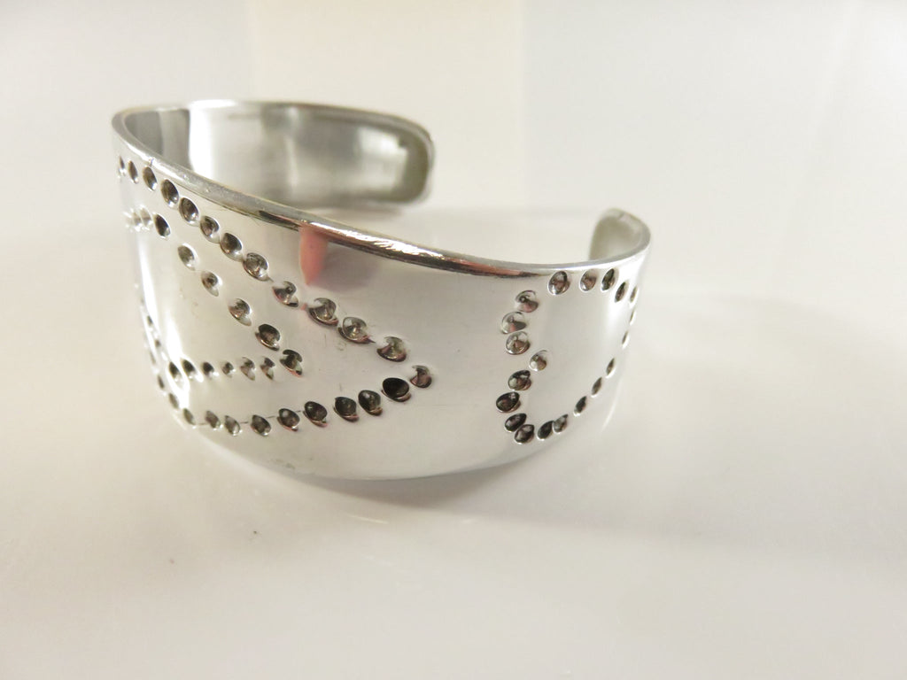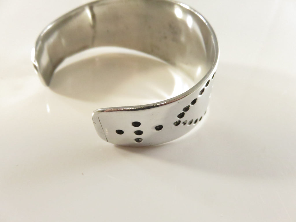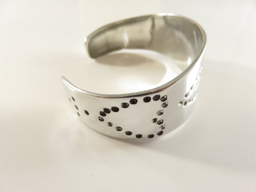 Vintage Retro 70's Aluminum Cuff Bracelet, Punched Heart Design, 7" ID