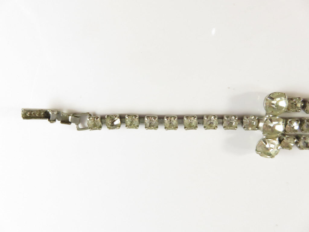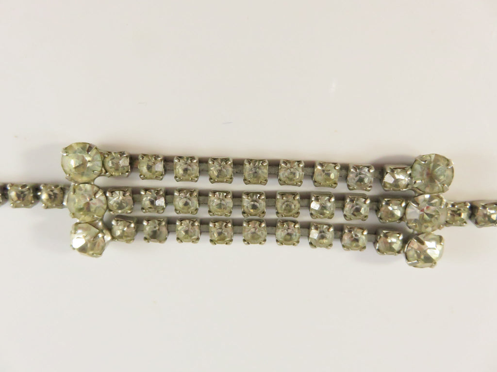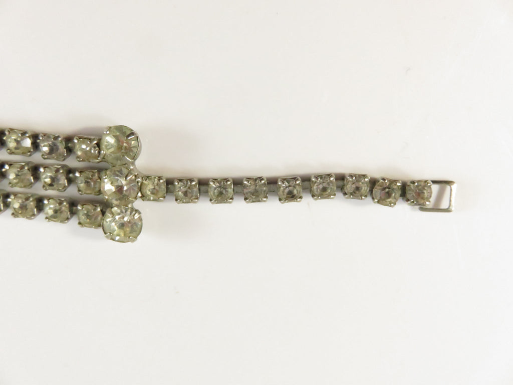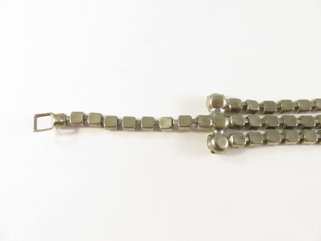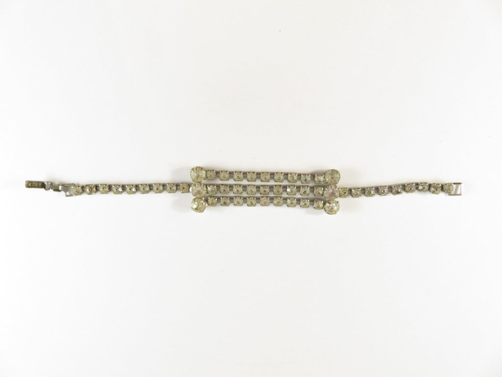 Vintage Rhinestone Bracelet, 3-Row Center, Clear Stones, 6.75", As-Found