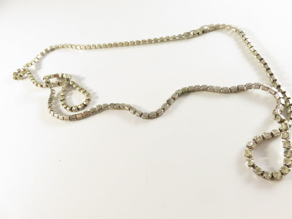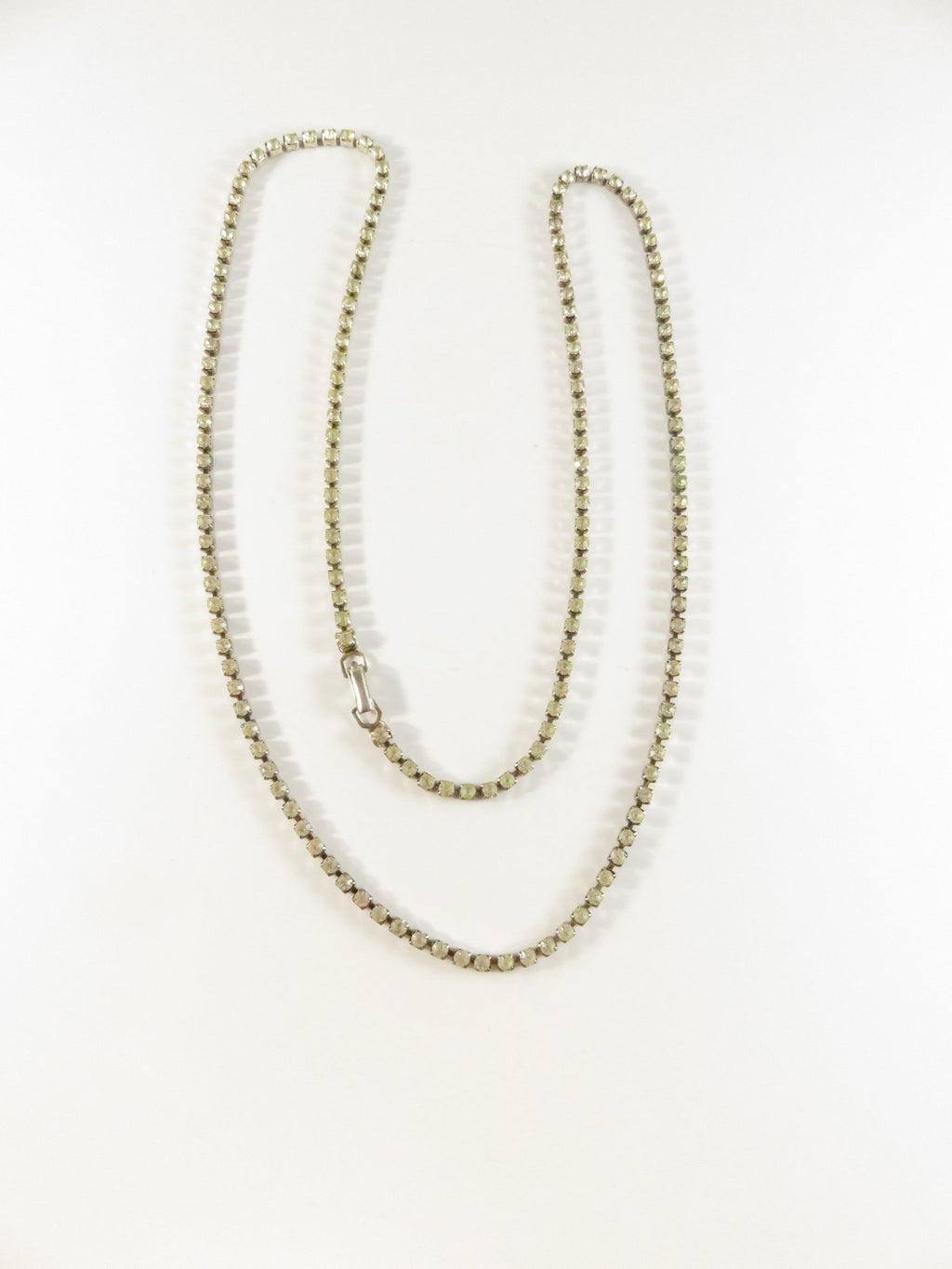 Vintage Rhinestone Necklace, 29.5", Tarnished Metal, As-Found