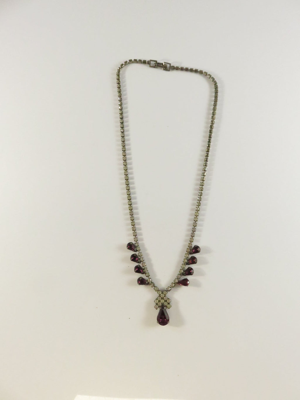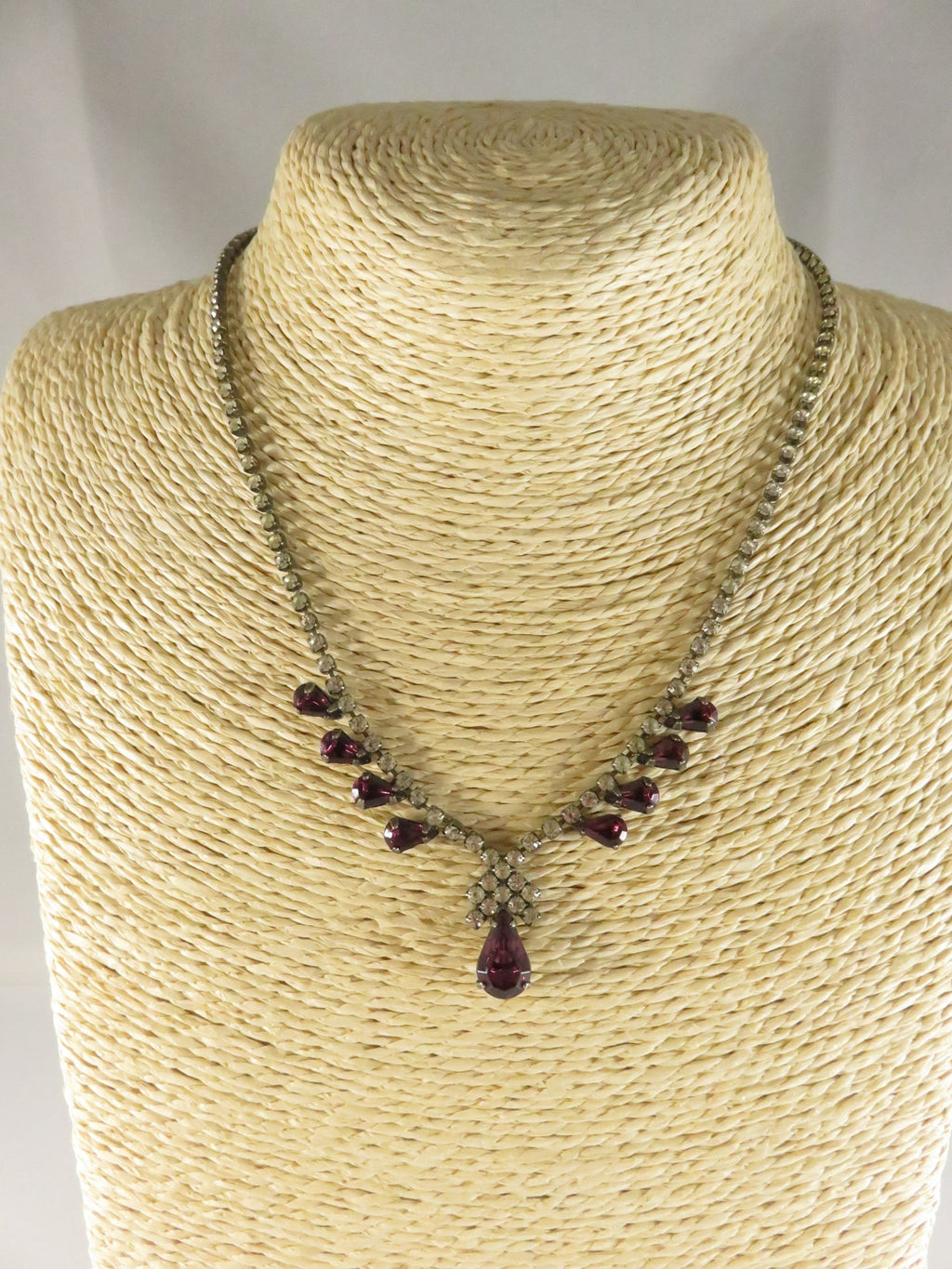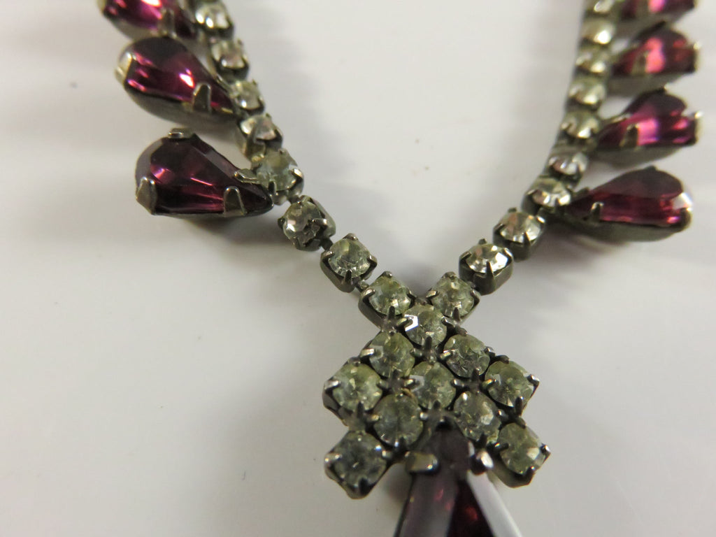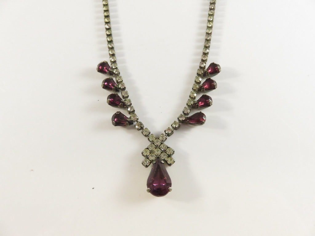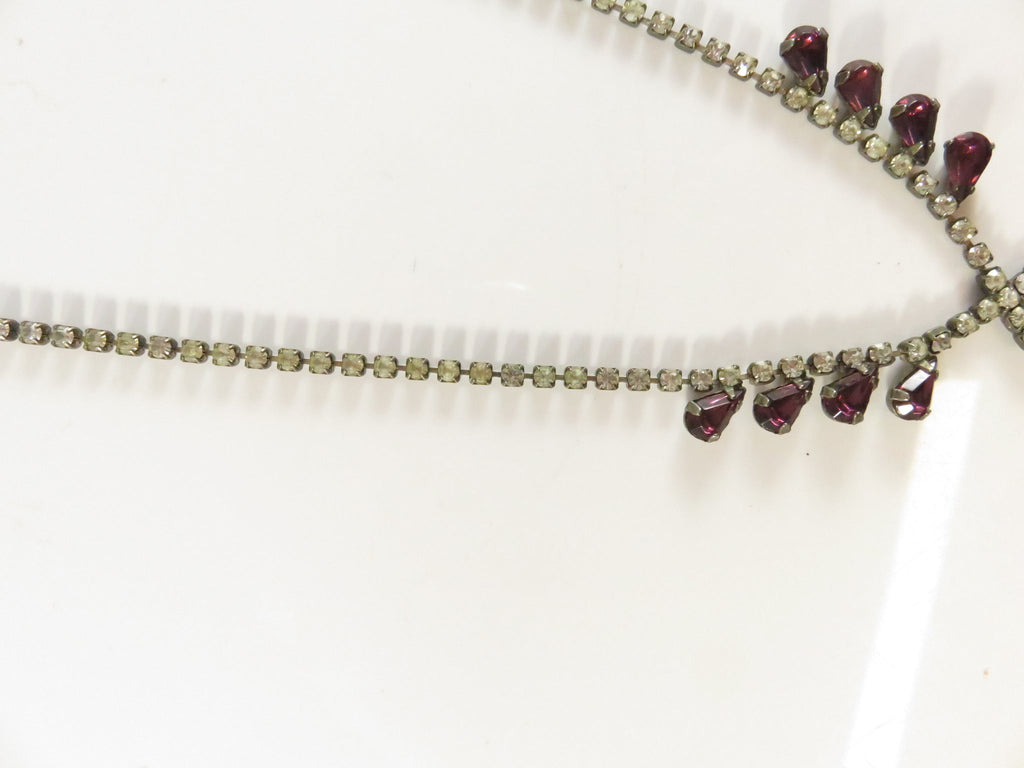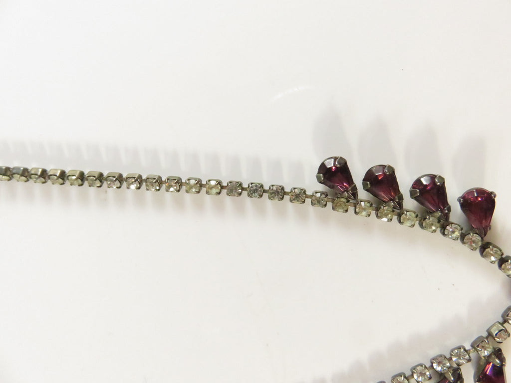 Vintage Rhinestone Necklace, Purple Rhinestone Accents, 16"