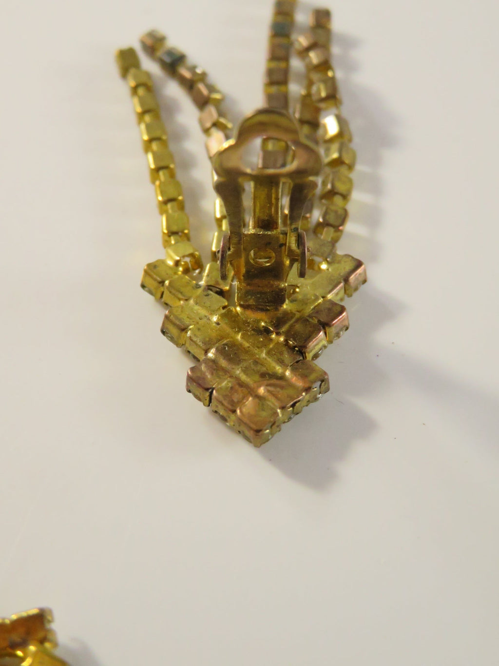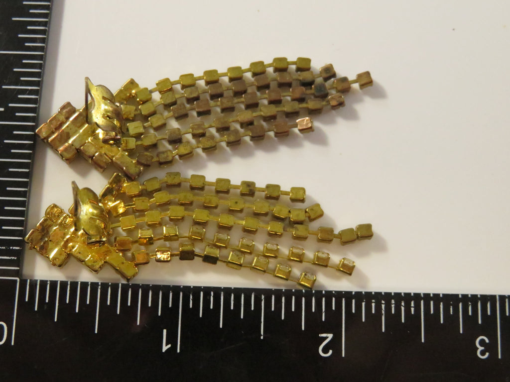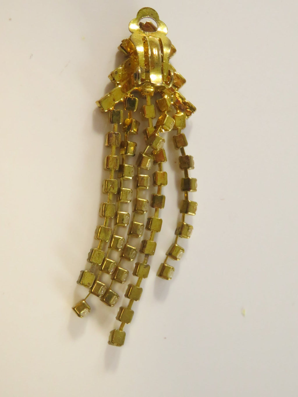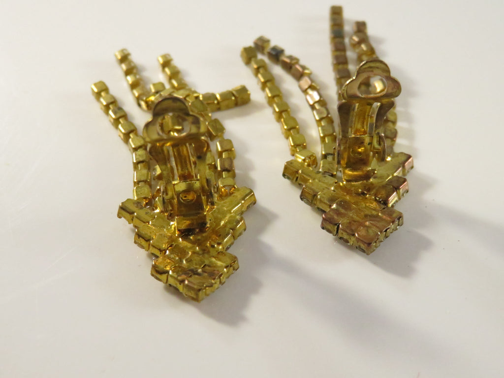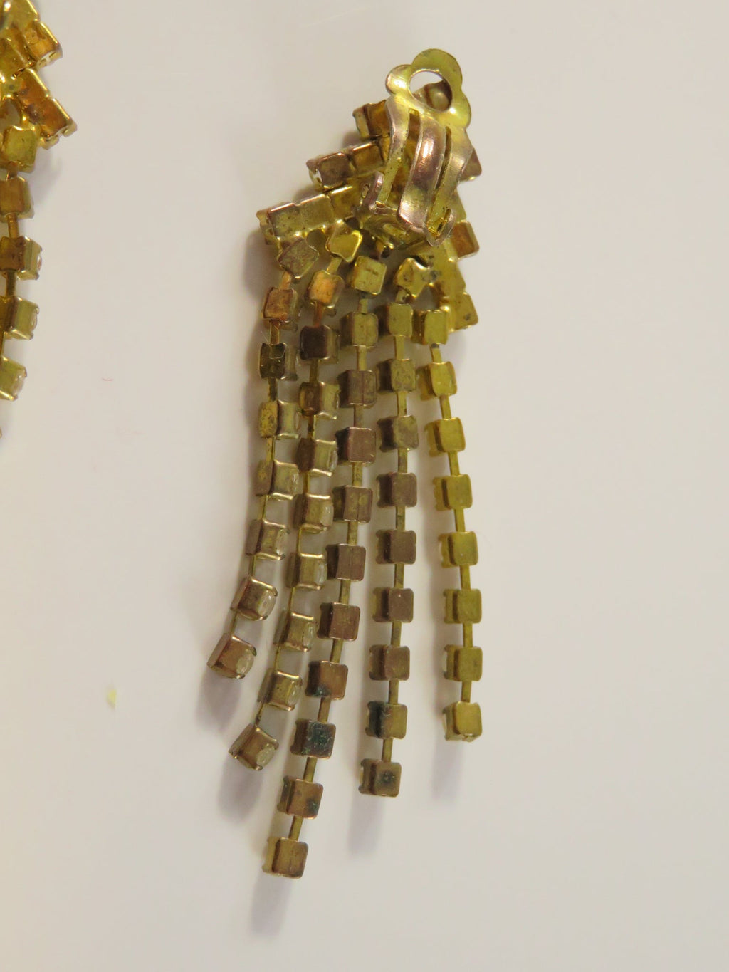 Vintage Rhinestone Waterfall Clip-on Earrings, Gold Tone, 2.25"