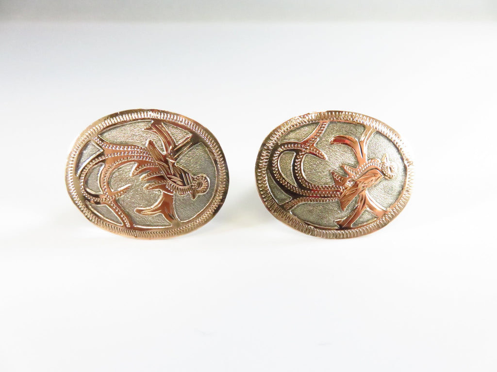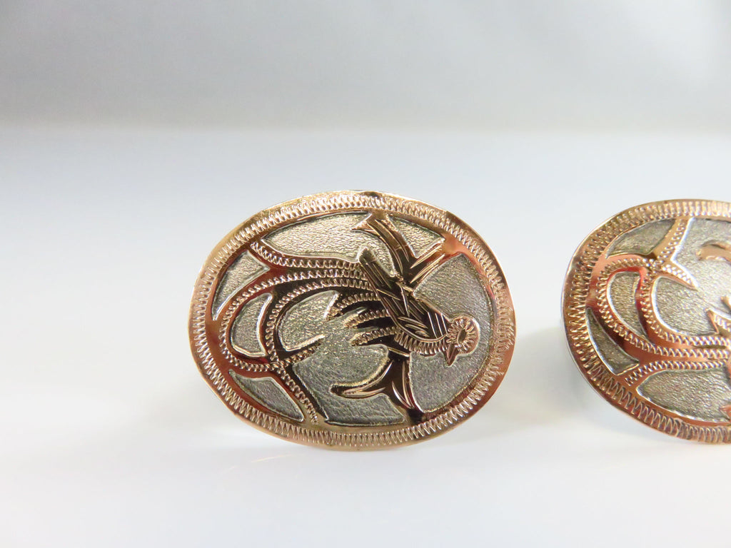 Vintage Rose Gold Plate Silvered Alpaca Southwestern Central American Cufflinks