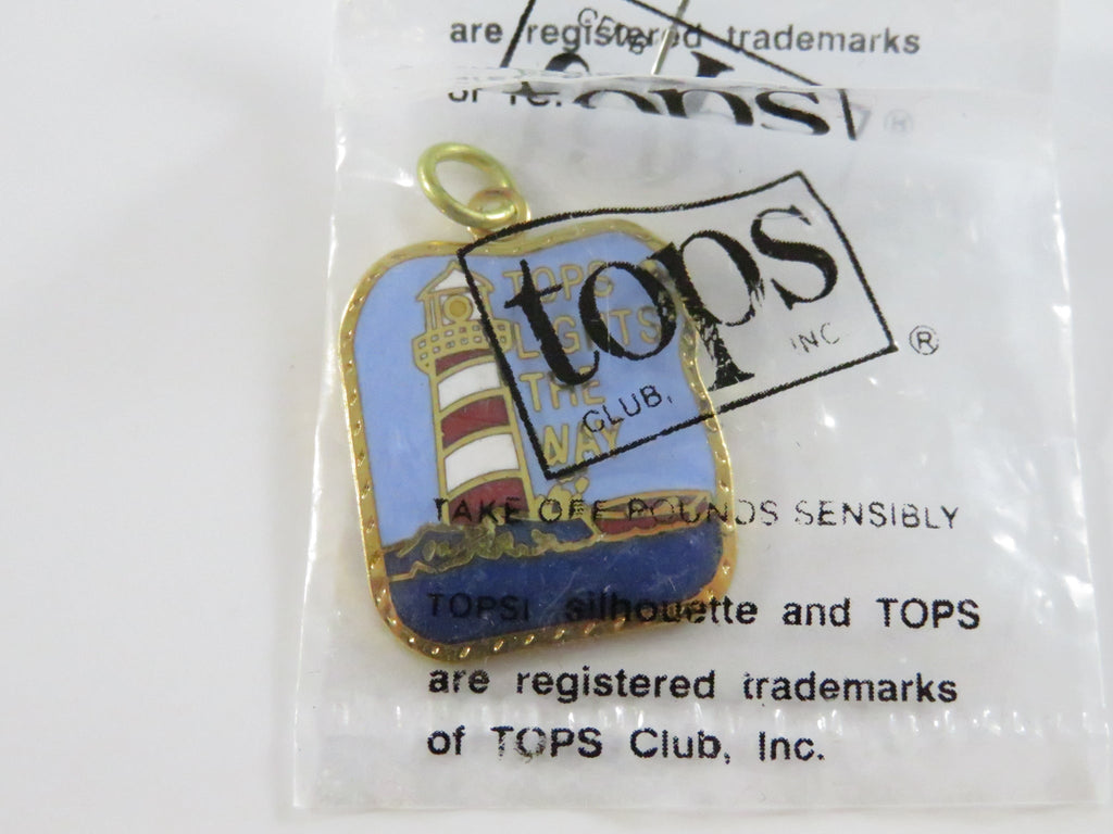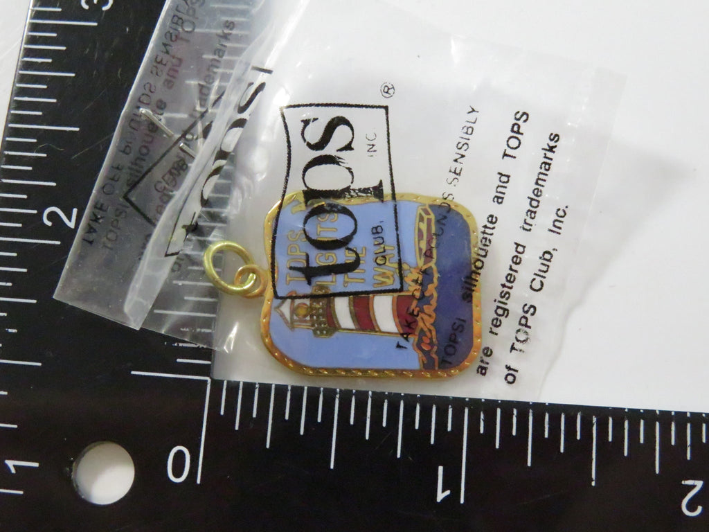 Vintage TOPS Lights The Way Enamel Charm Pendant Brass-Tone NOS