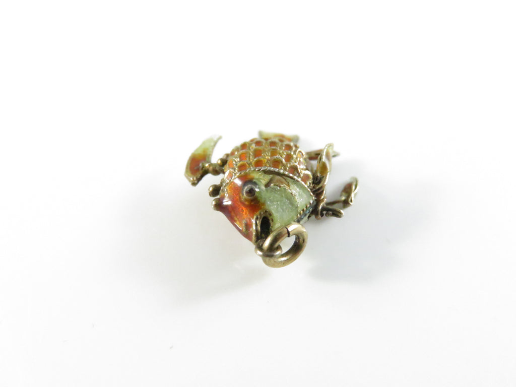 Vintage Wiggly Fish Enameled Articulated Koi Fish Pendant Charm Gilt Metal