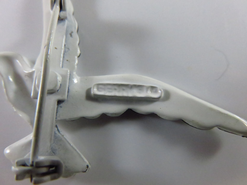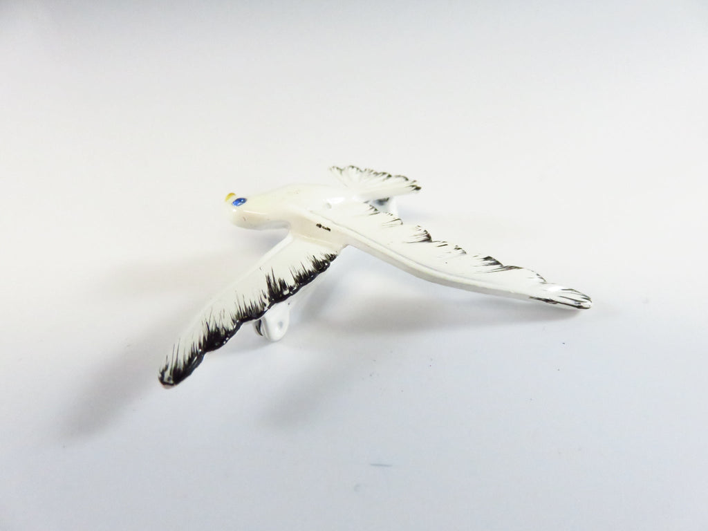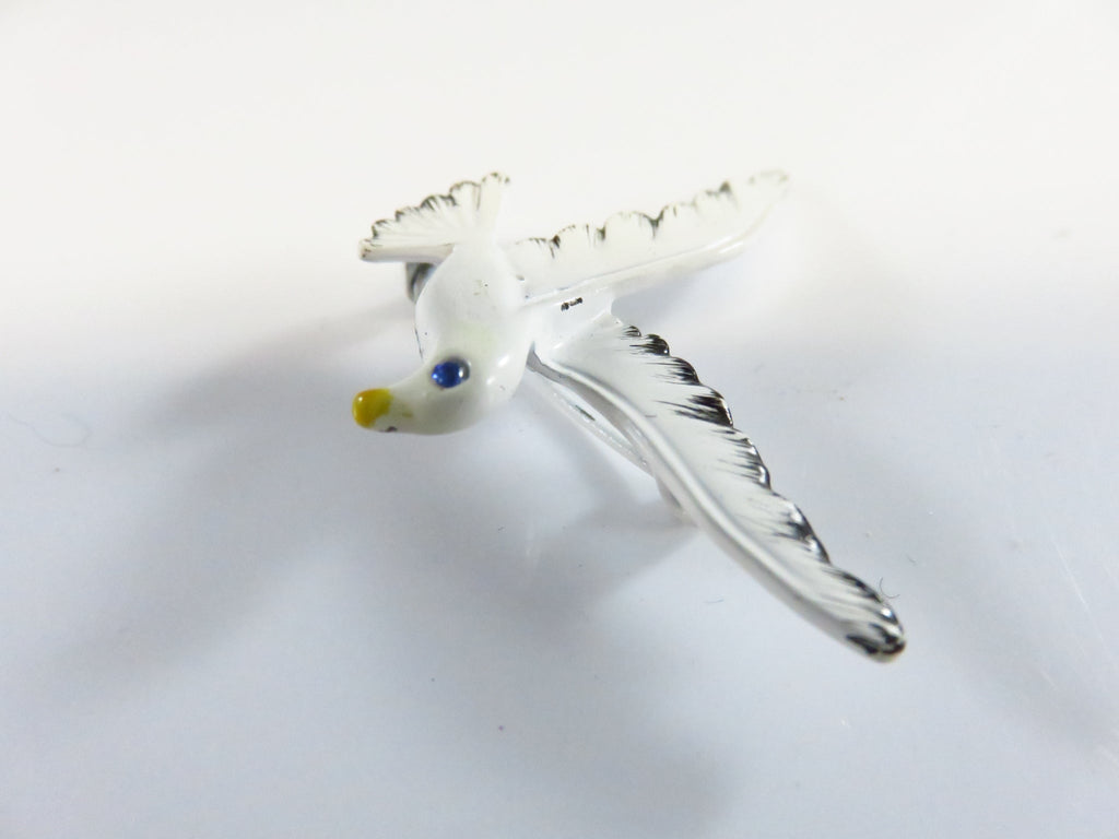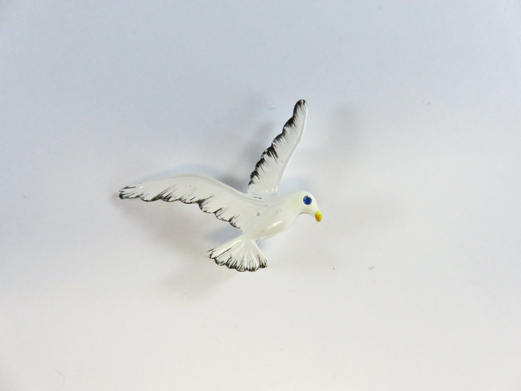 White & Black Seagull Brooch Pin Beach Wear Blue Rhinestone Eye by Gerry's