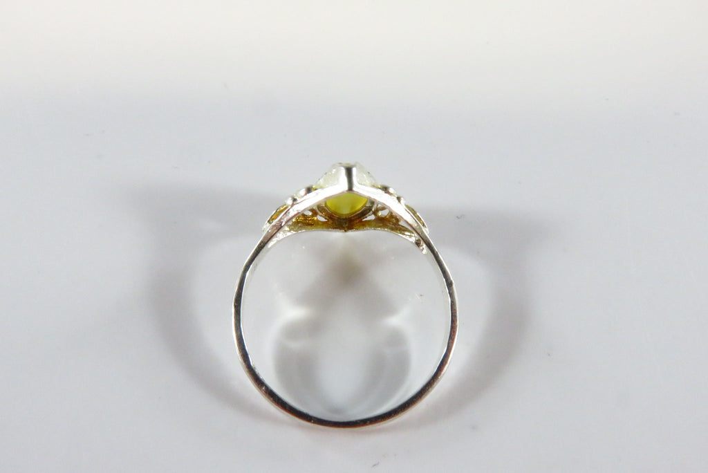 Yellow Glass Marquise Cabochon Pierced Setting White Metal Ring Size 8.25