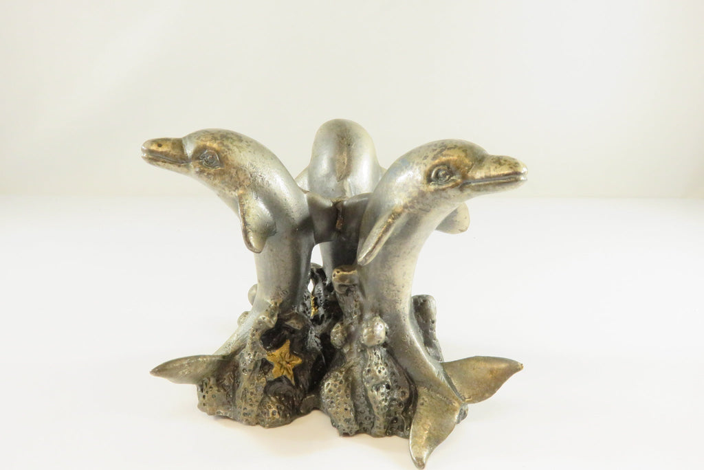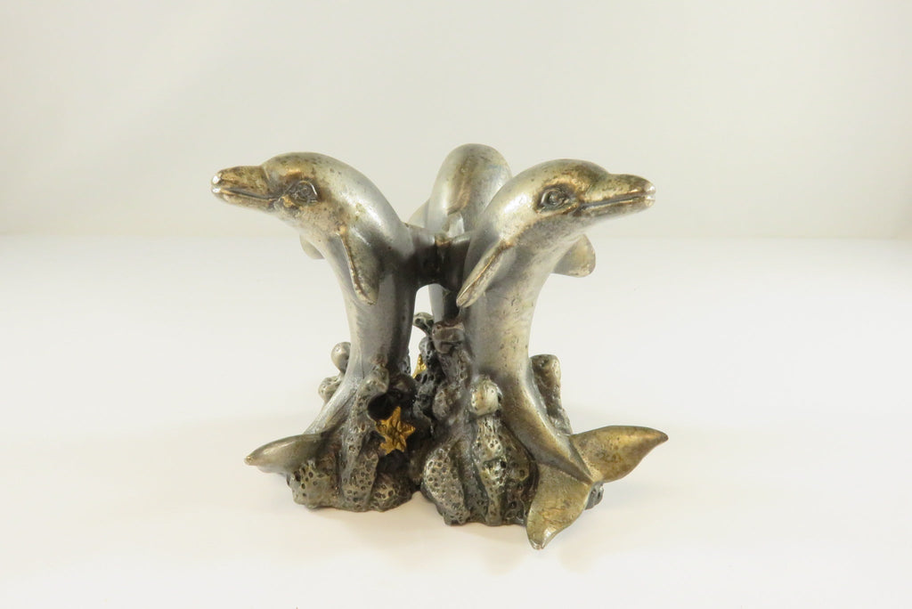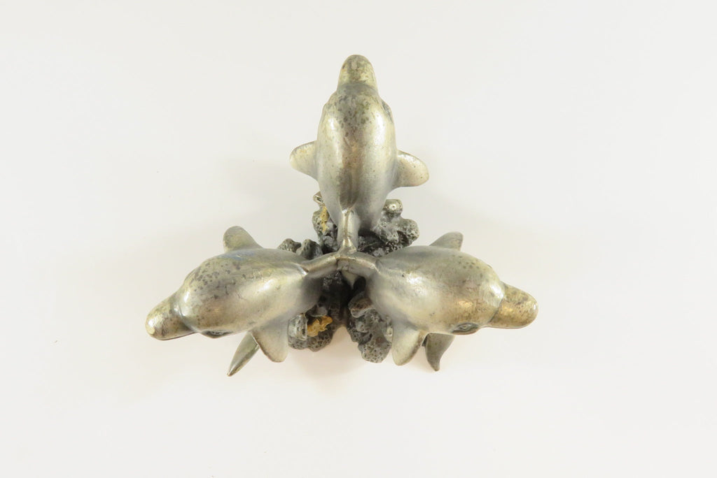 Dolphin Pewter Stand, Triple Dolphin Crystal Ball Stand 2 1/2" x 3" Approx
