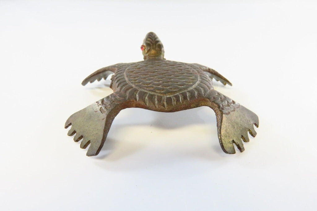 Small Brass Turtle with Little Red Eyes and Scratchy Paws / Vintage