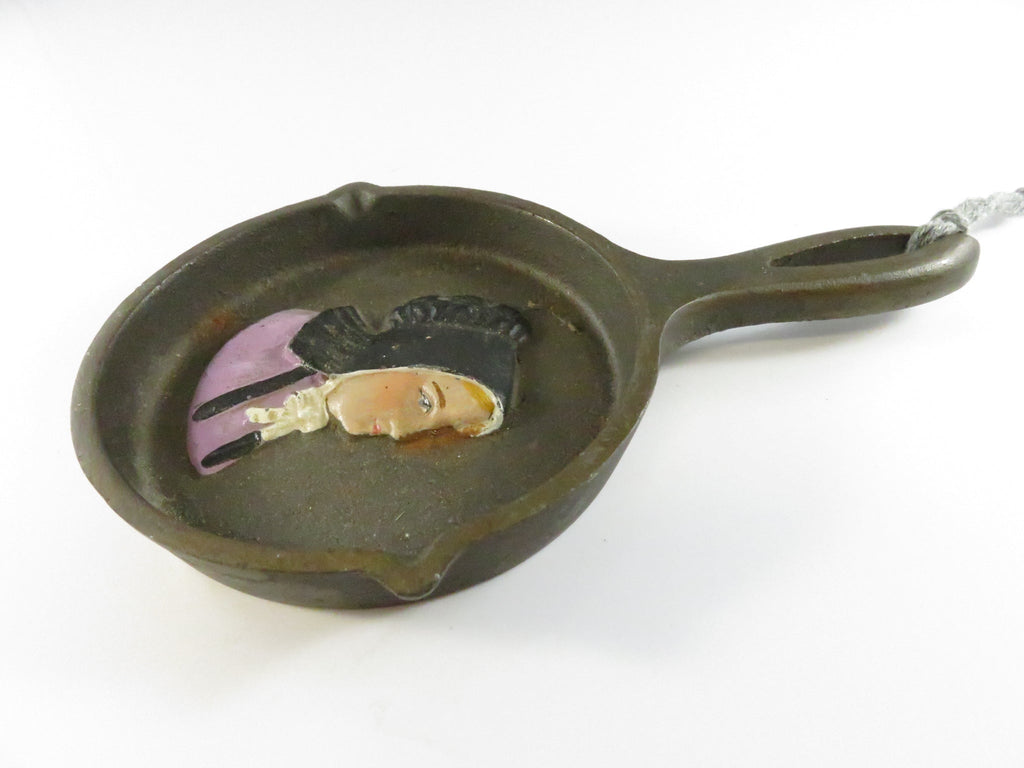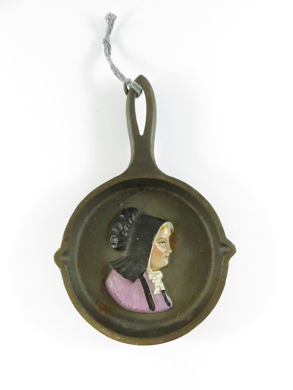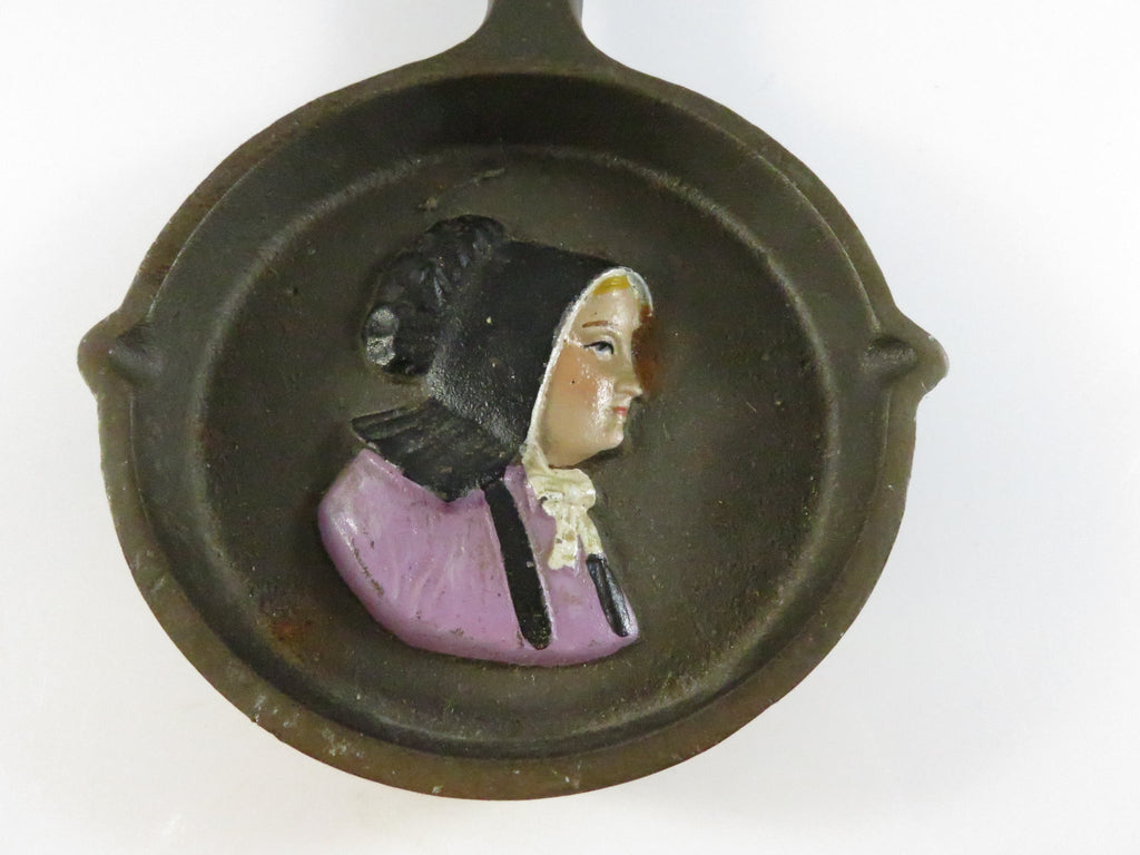Vintage Cast Iron Miniature Skillet with Painted Amish Girl - 6 3/8"