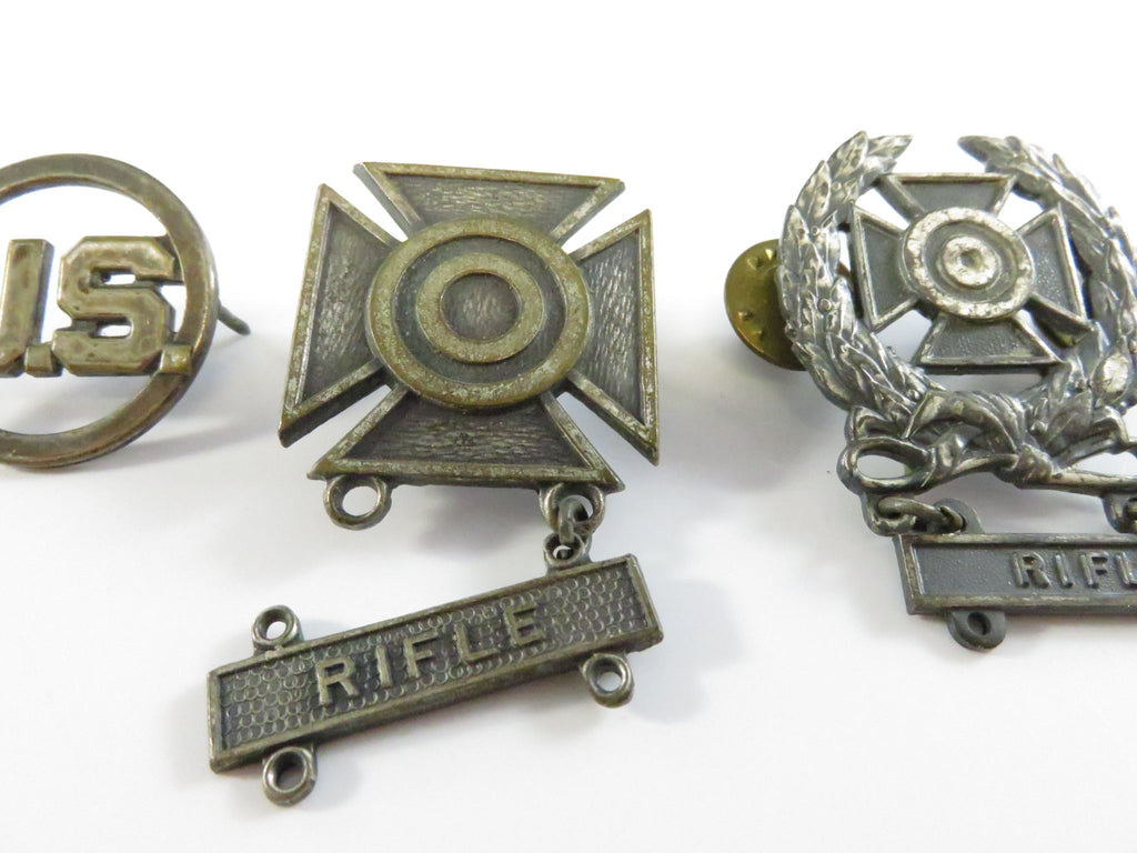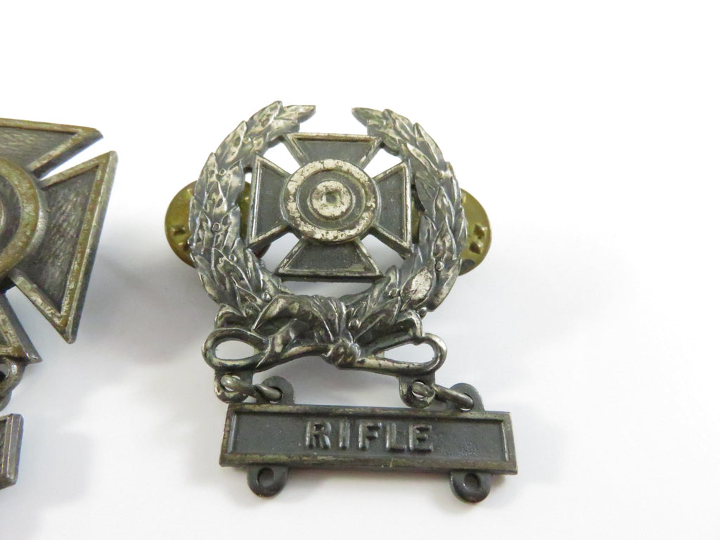 Lot of U.S. Military Rifle Marksman Qualification Badges and Insignia - Silver Tone