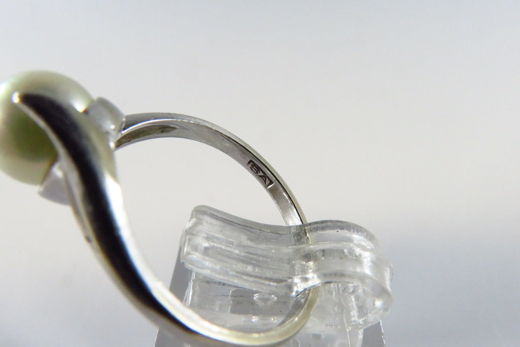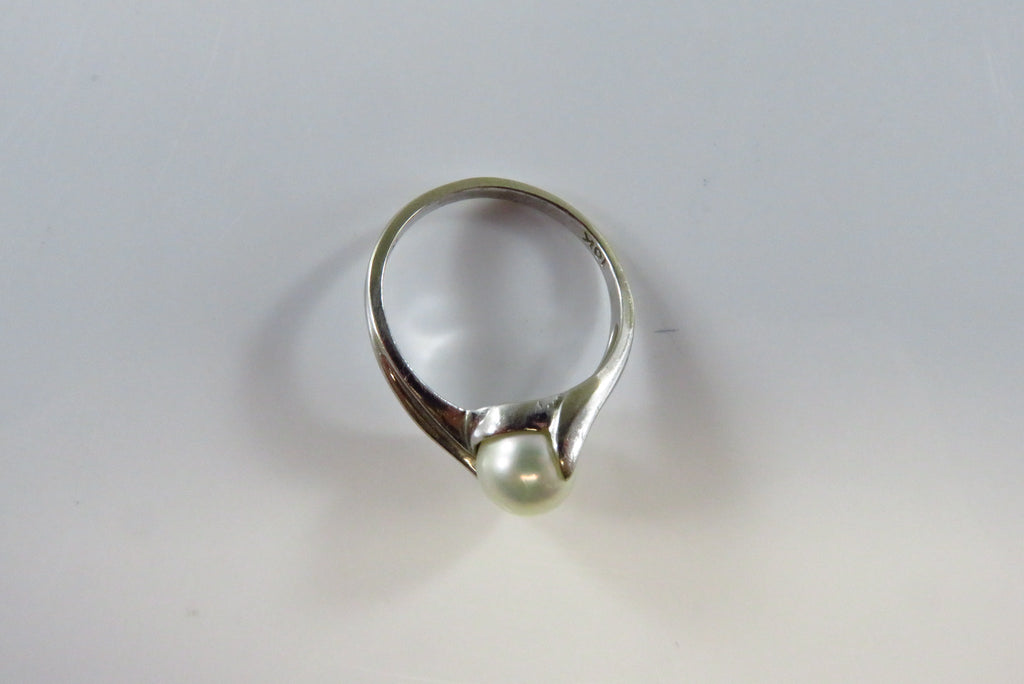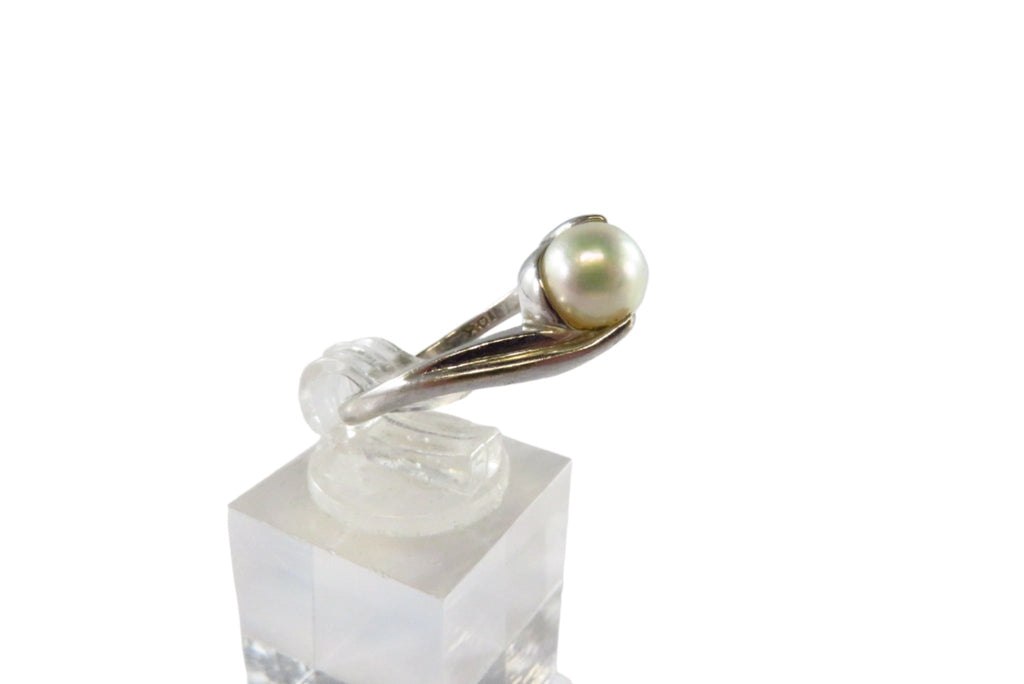 10K White Gold Modernist Bypass Ring with Cultured Pearl, Size 6.25, SA Mark