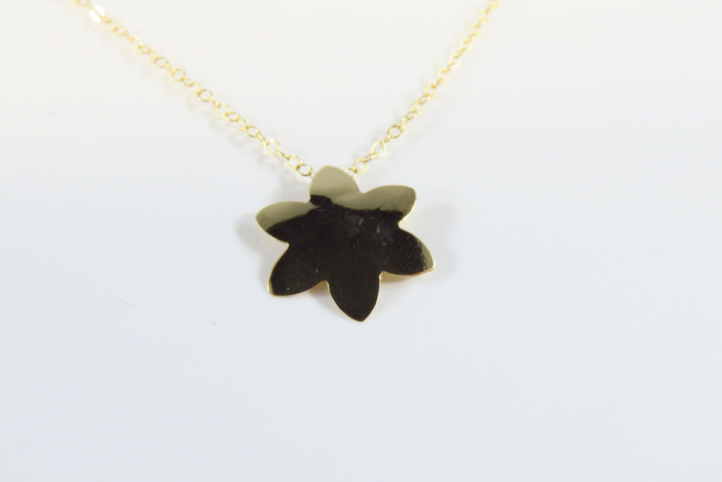 14K Gold Flower Pendant on Petite Cable Chain, 15.5" Choker Length