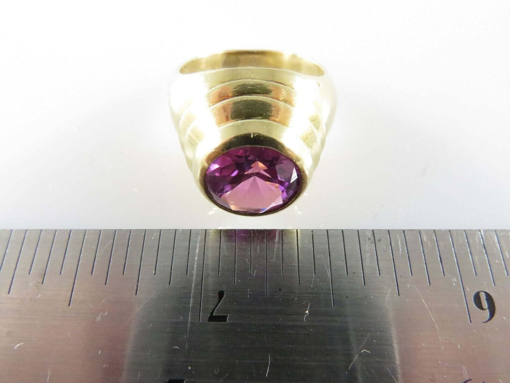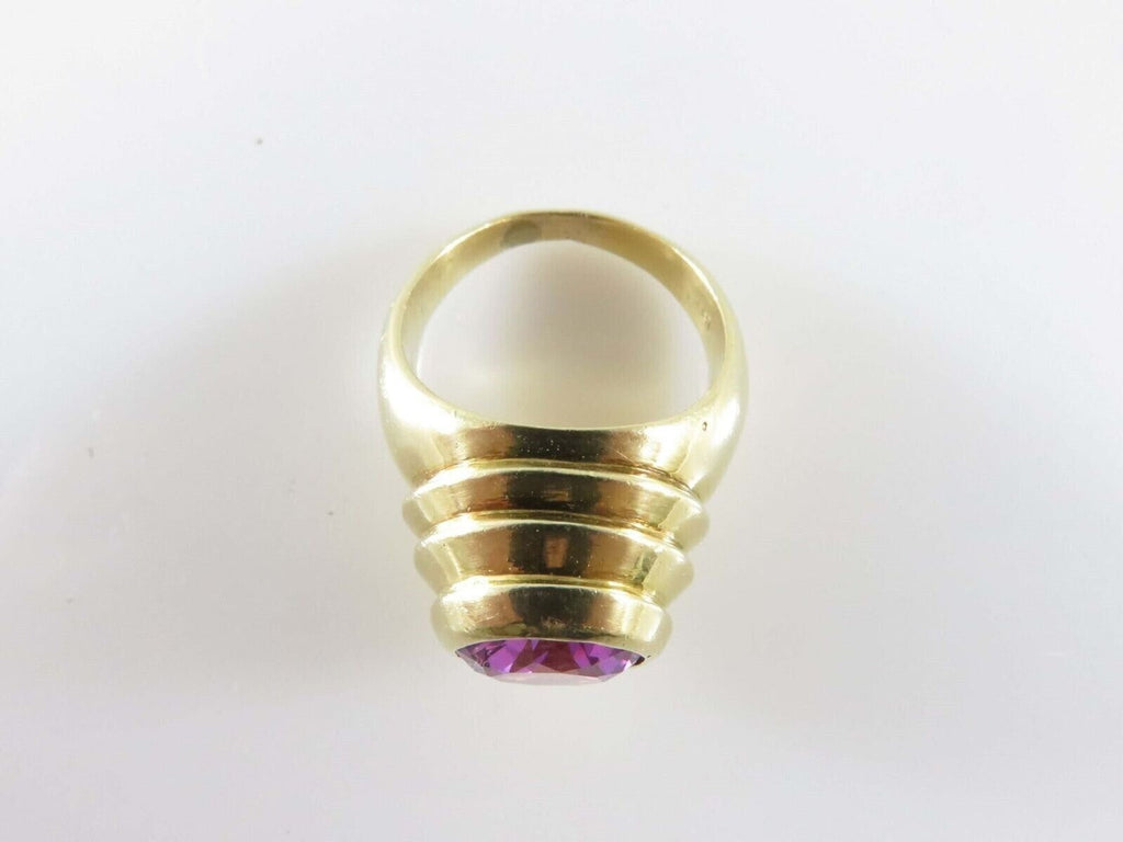 18K Gold Beehive Ring 60's Style 18K Honey Ring Round Cut Purple Sapphire