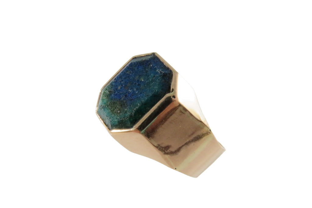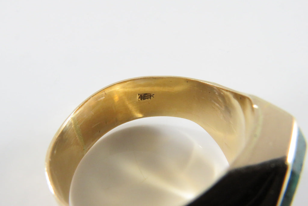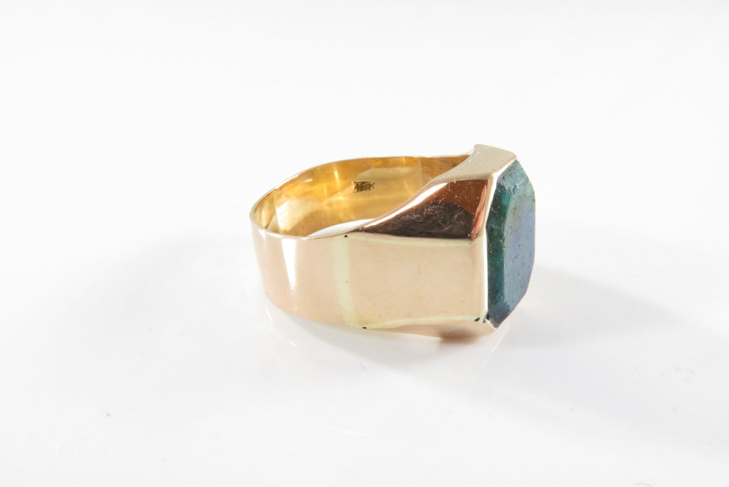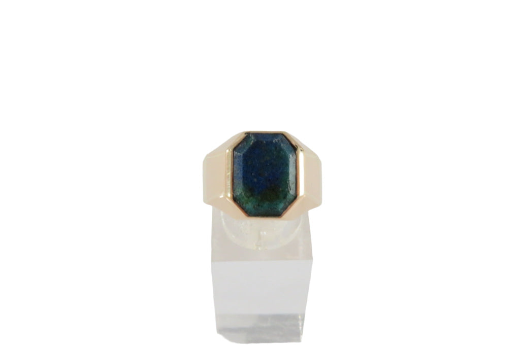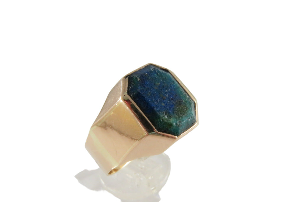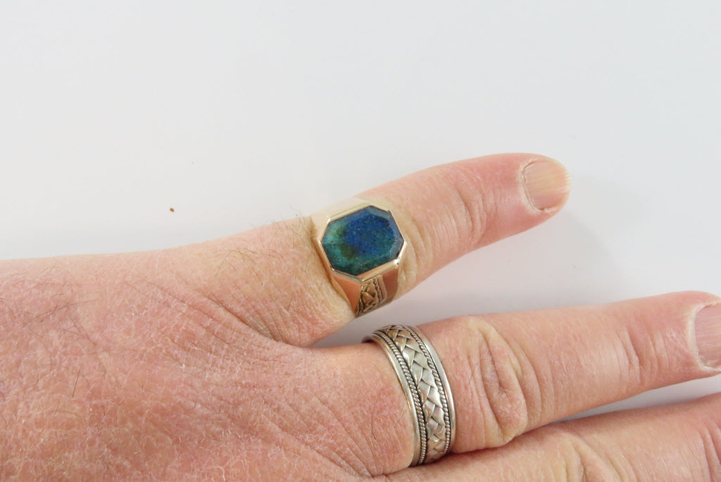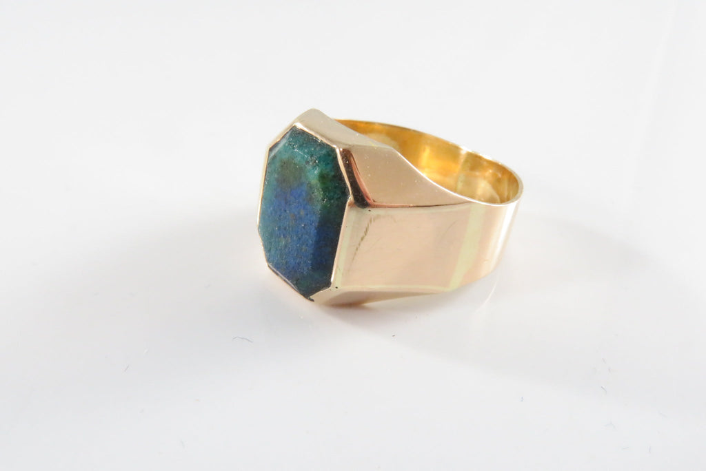 18K Gold Azurite Malachite Plaque Men's Ring Size 8 3/4