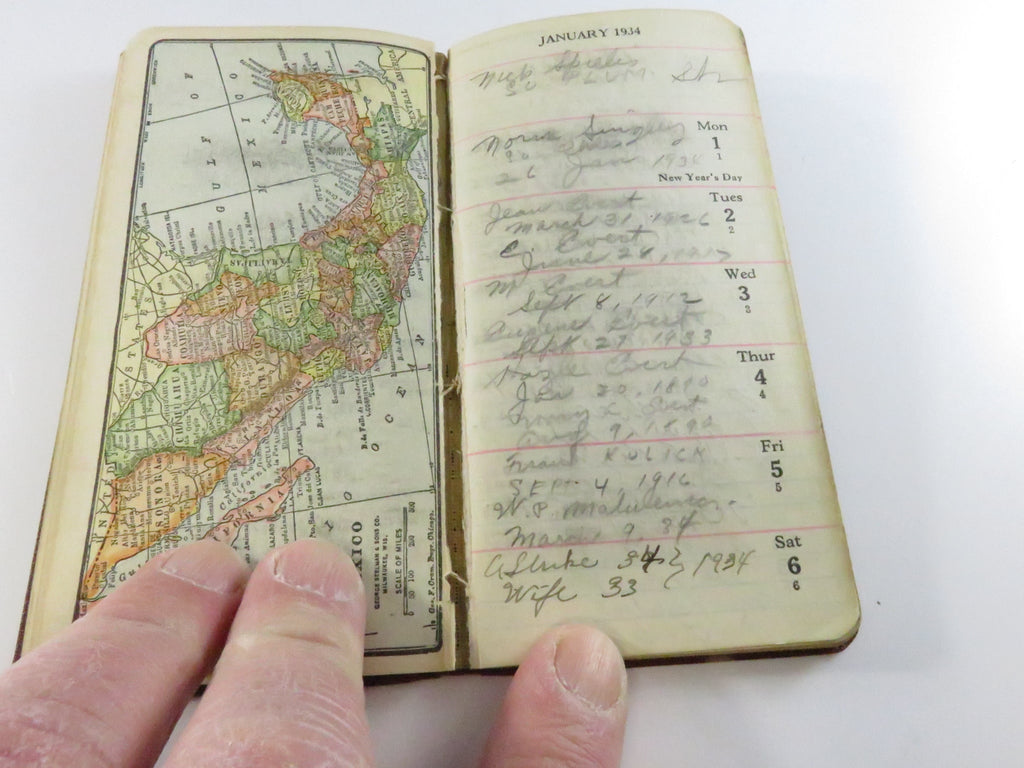1934 La Salle Diary - Pocket Calendar Book - World Maps - Milwaukee WI