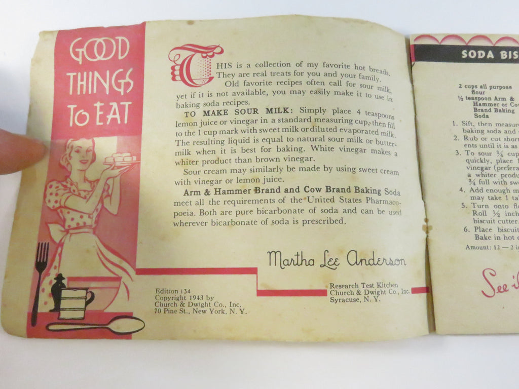 1943 Good Things to Eat Baking Soda Recipe Pamphlet Church Dwight Arm Hammer