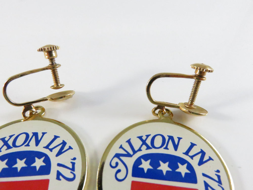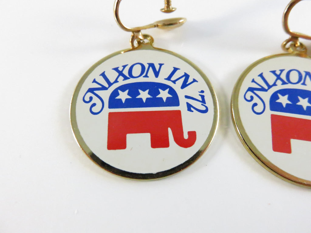 1972 Nixon in '72 Republican Elephant Screw-Back Dangle Earrings Campaign Jewelry