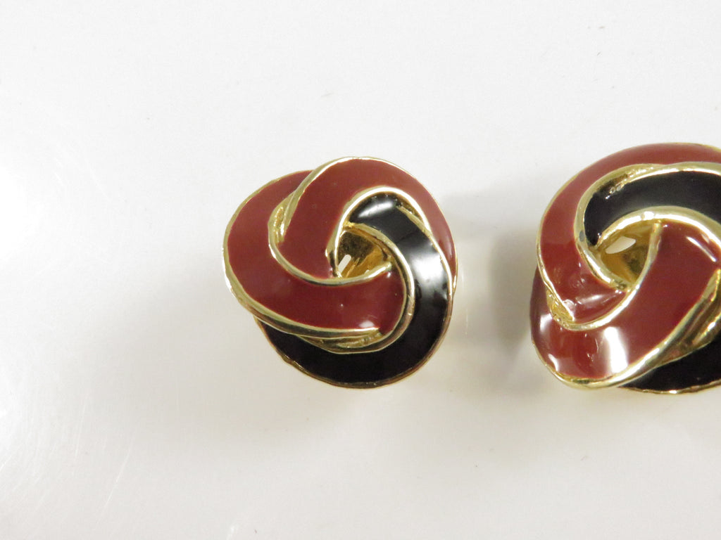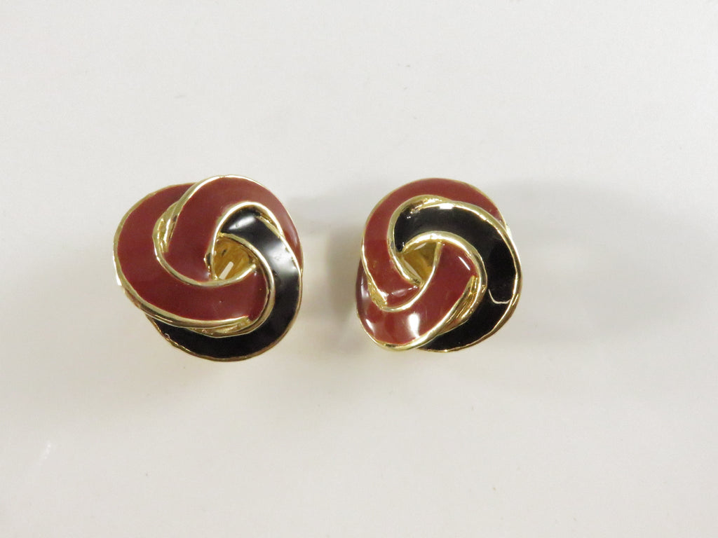 1980s Woven Ribbon Clips, Red Black Enamel Earrings, Chunky Interlocking, 1"