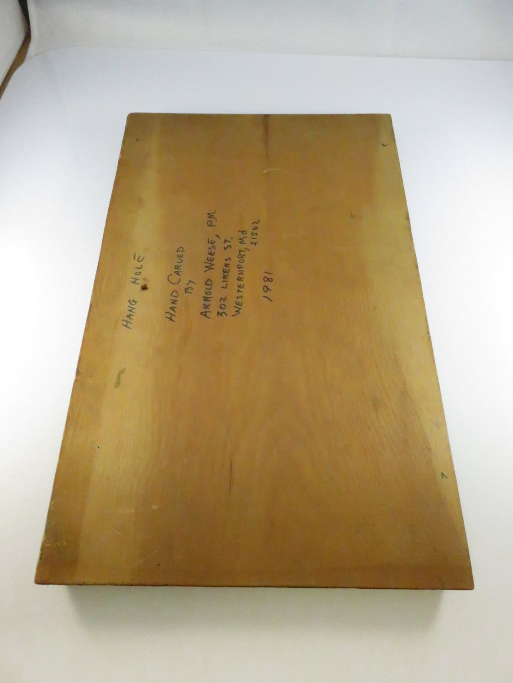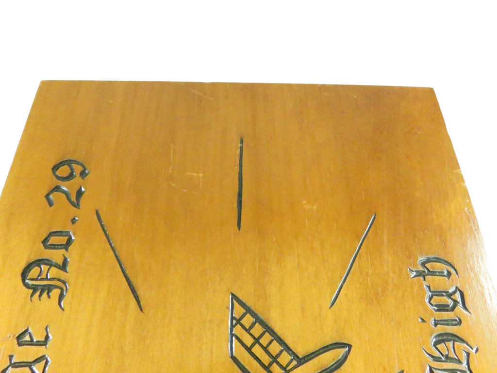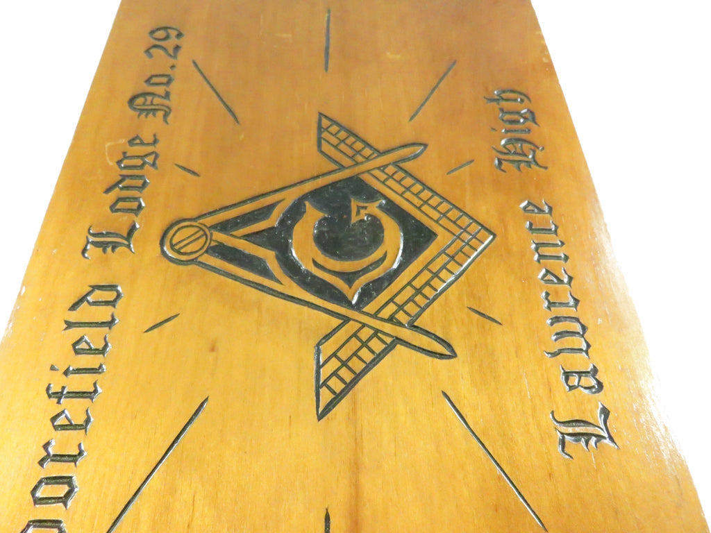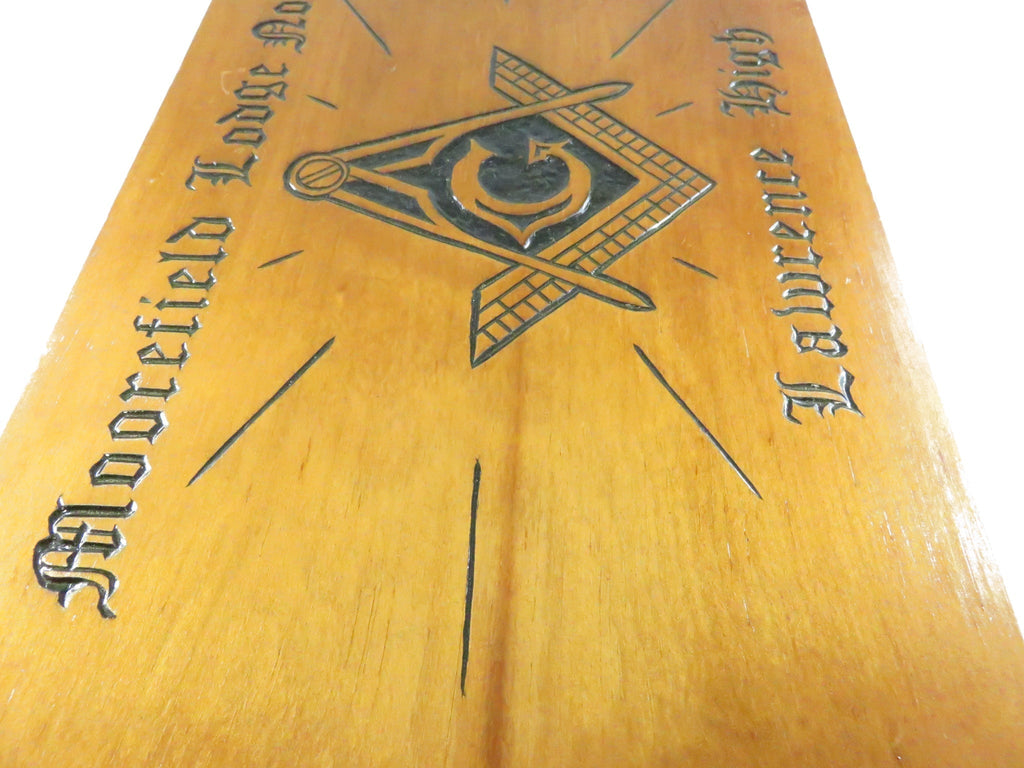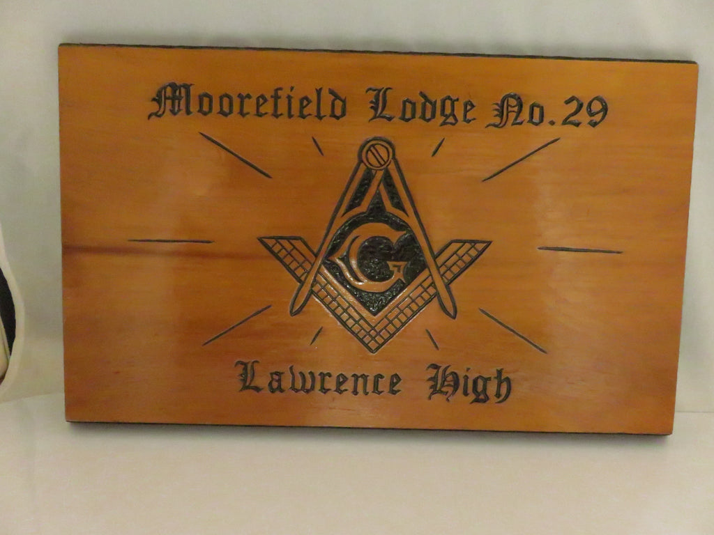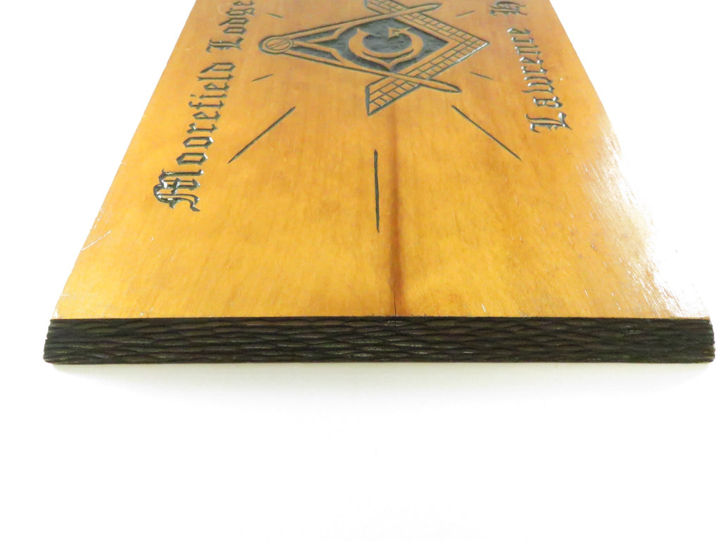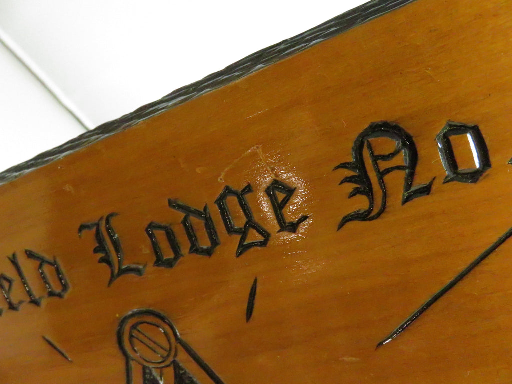 1981 hand-carved Masonic wood plaque – Moorefield Lodge No. 29, Square & Compasses emblem