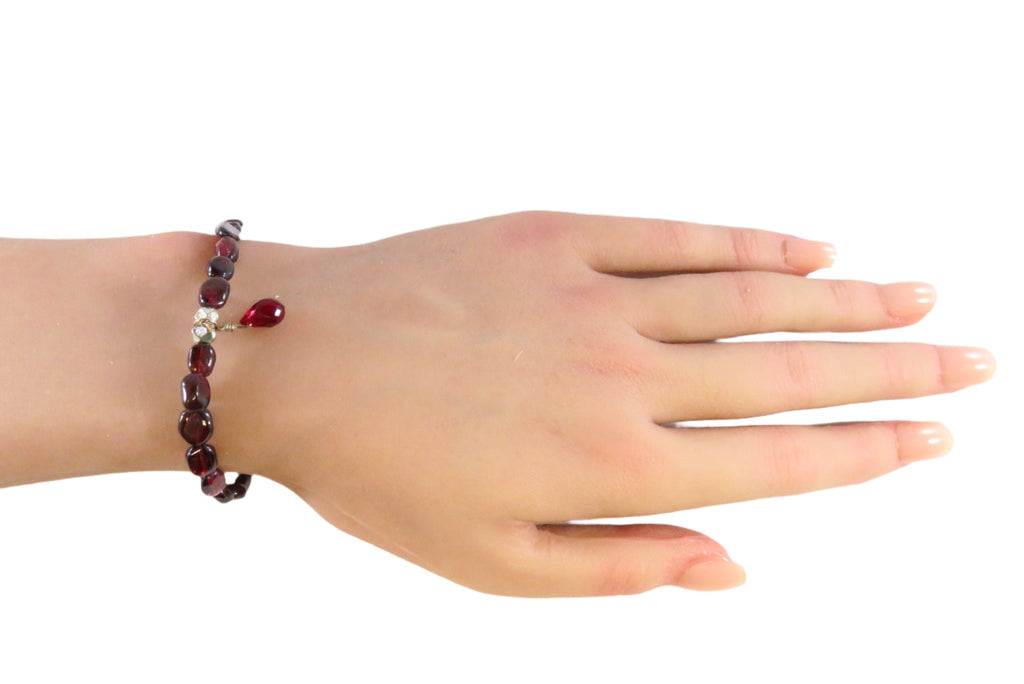 7 1/4" Garnet Glass Beaded Bracelet Sterling Silver Beaded Bracelet