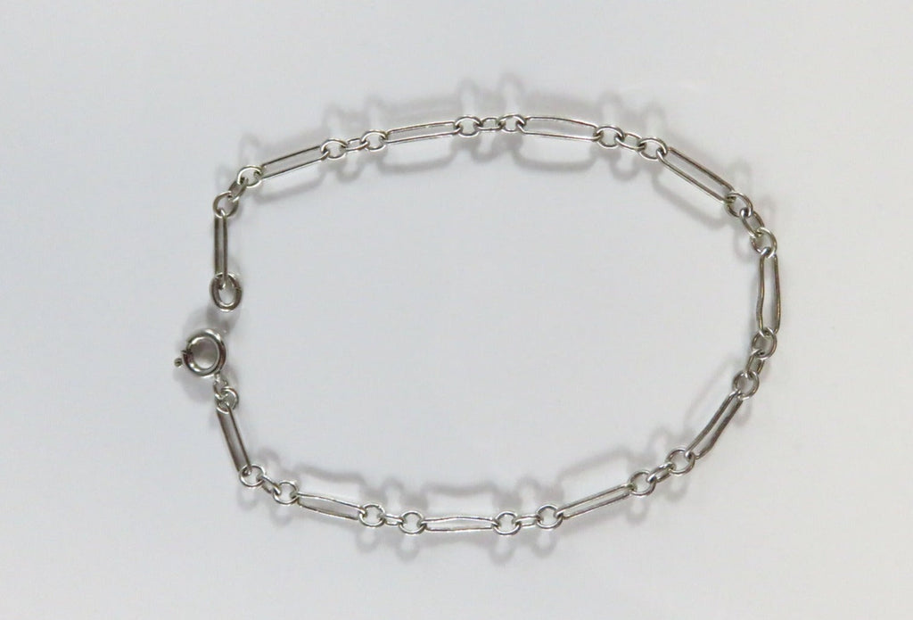 7 1/4" Sterling Silver Long Short Link Bracelet Spring Ring Closure