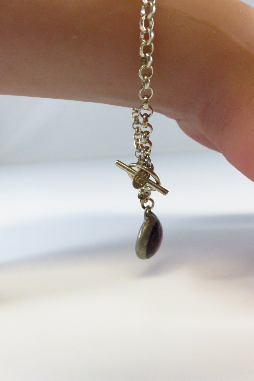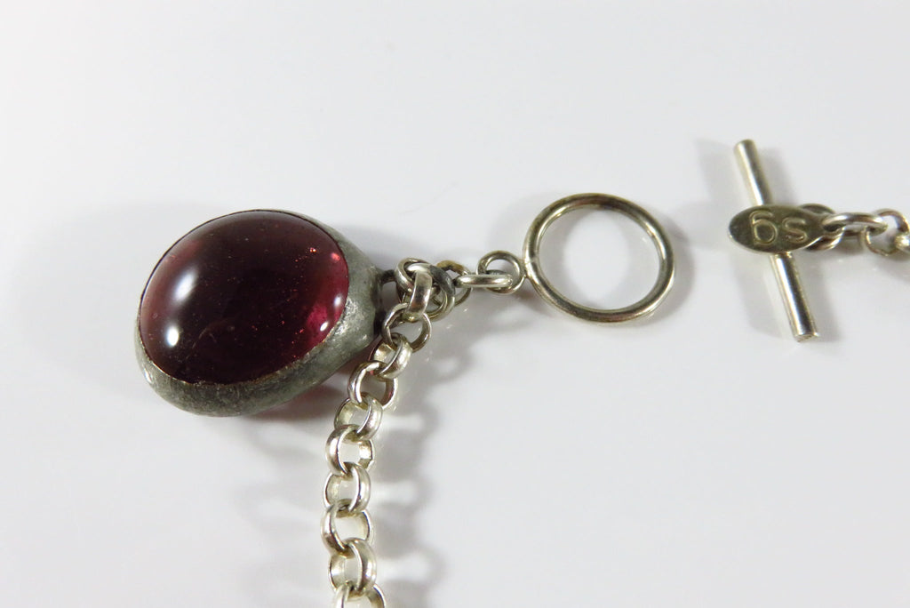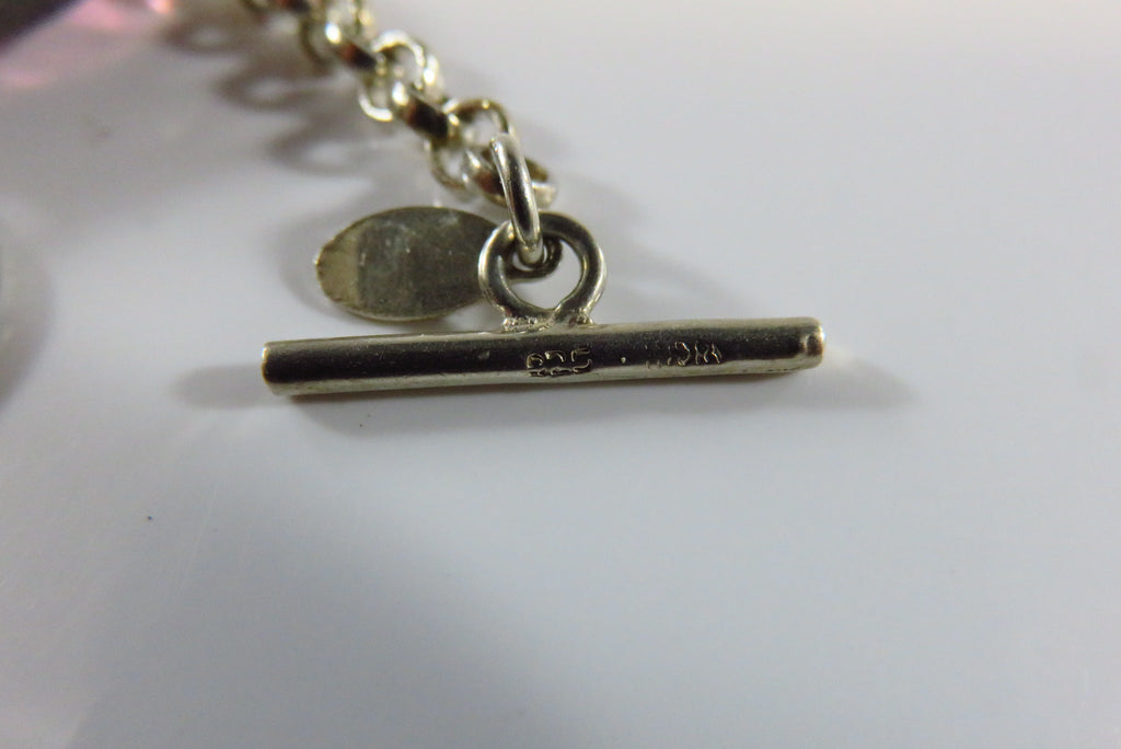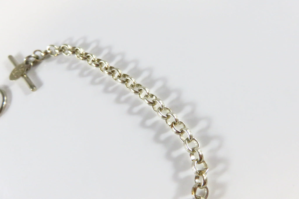8" Sterling Silver SG Toggle Link Bracelet Rolo Link Charm Bracelet