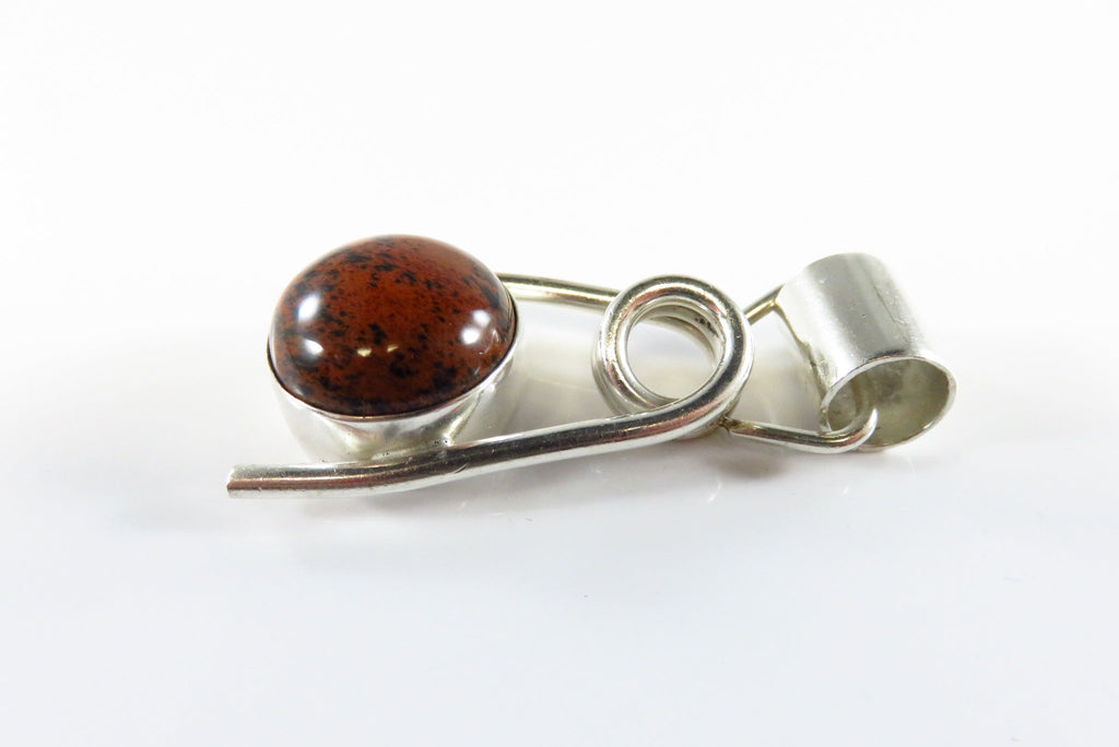 925 Mexico Mahogany Obsidian Jasper Omega Style Sterling Slide Pendant