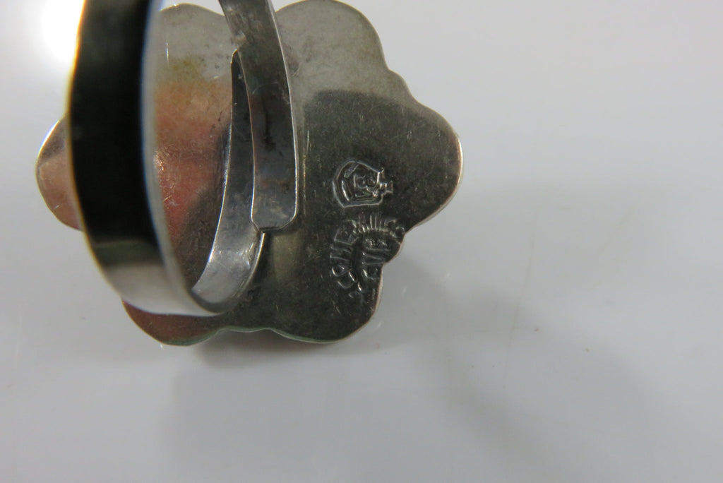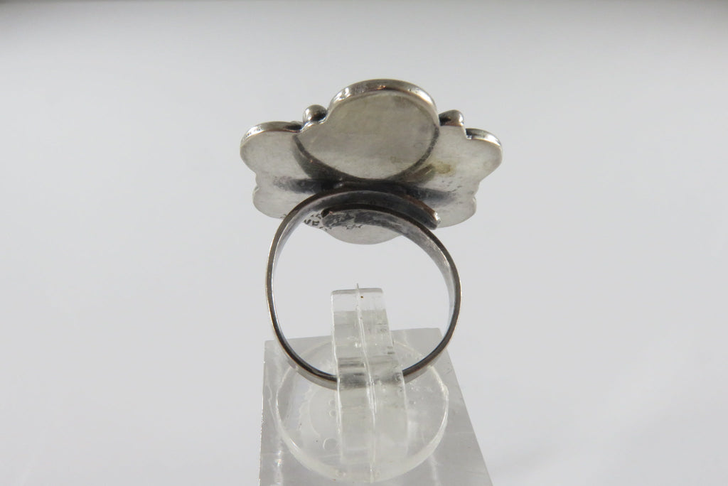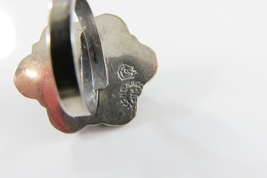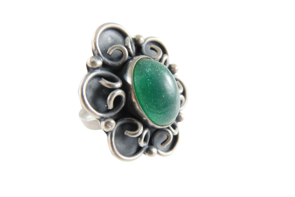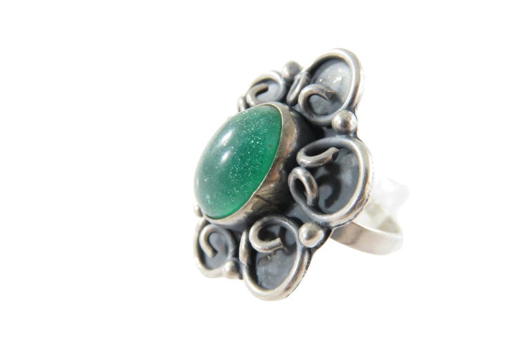 925 Sterling Polished Green Glass Adjustable Finger Ring Mexico Sz 6
