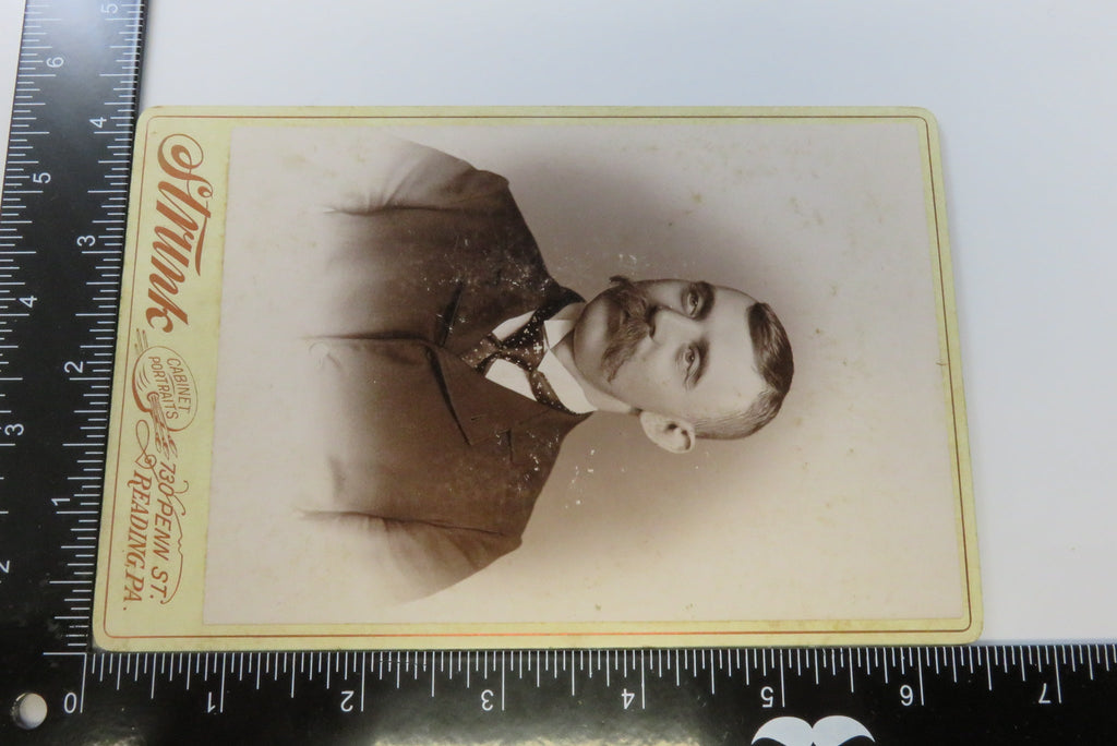 Another Huge Mustache Man in Suit & Tie Antique Cabinet Card Strunk Reading PA