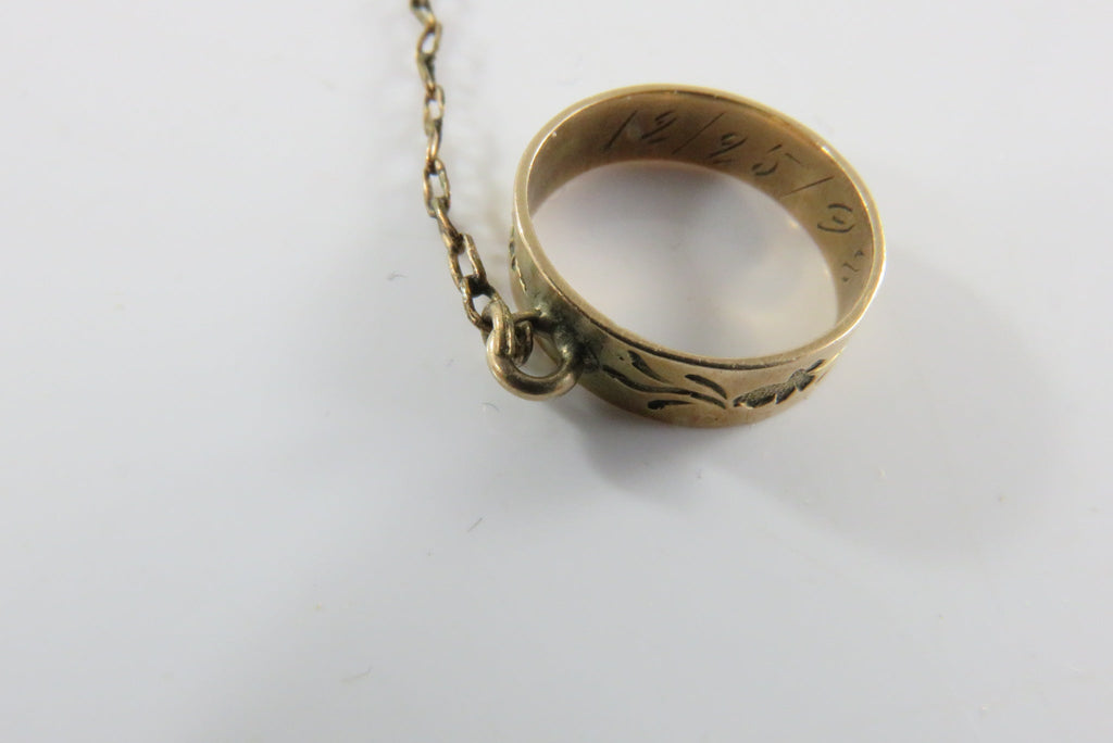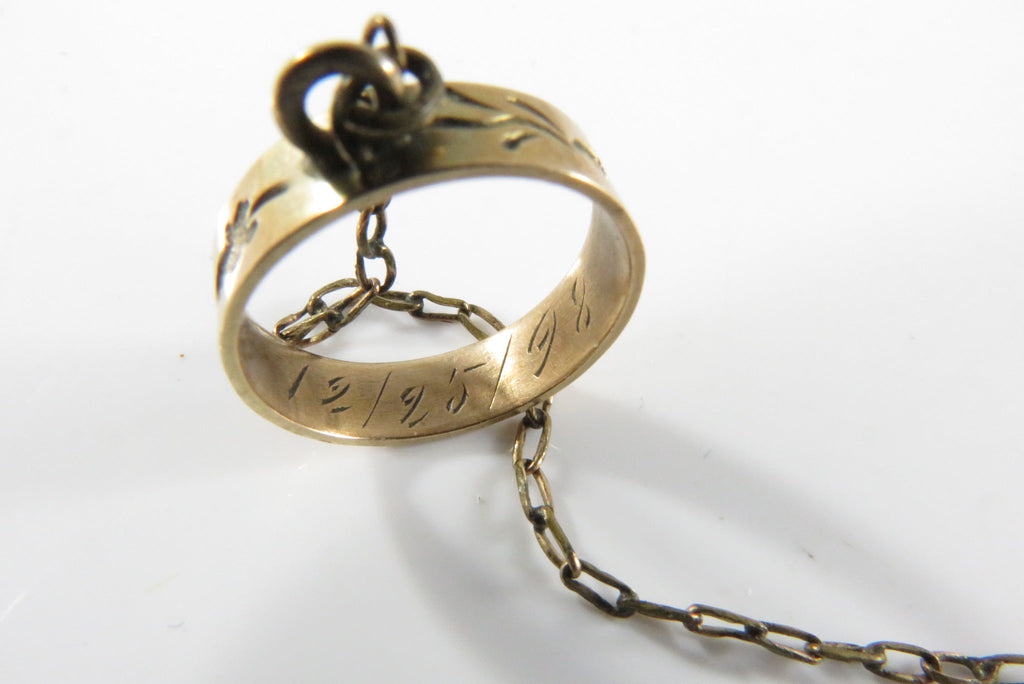 Victorian Child Hand Chain Bracelet with 10K Gold Engraved Ring c1898 and Gold-Filled Bracelet