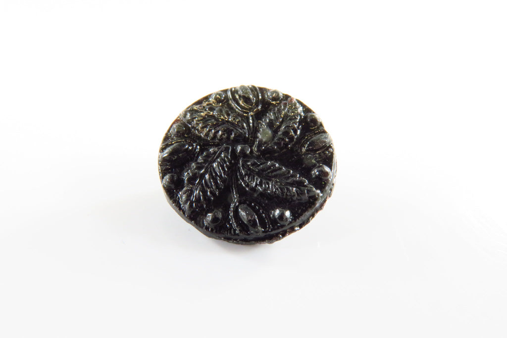 Antique Black Glass Flower Form Victorian Button 18.07mm