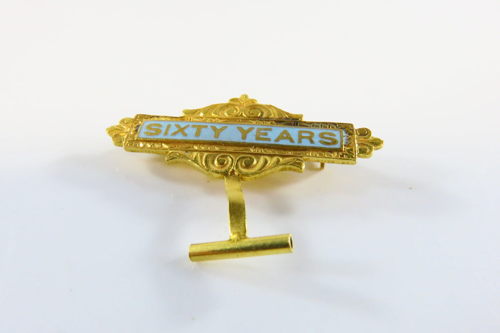 Antique Blue Enamel Yellow Gold Filled 60 years of Service Partial Pin Unknown