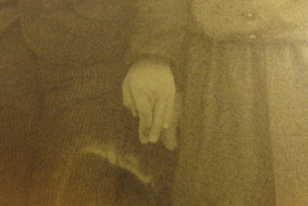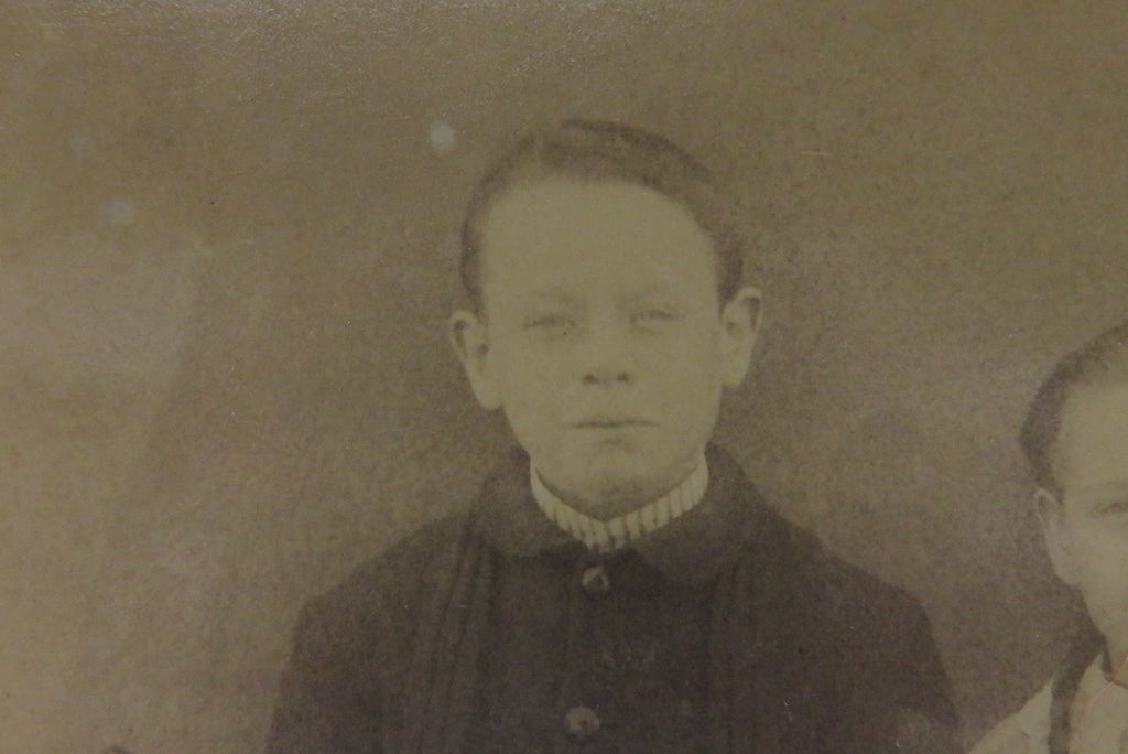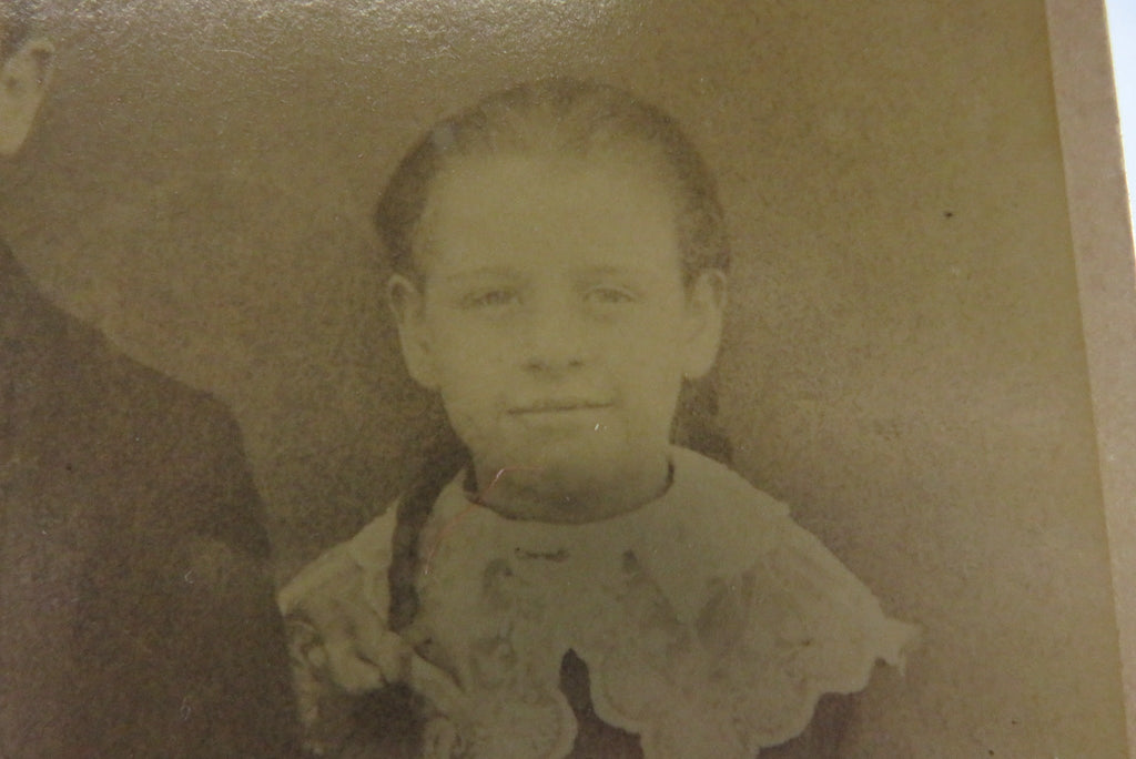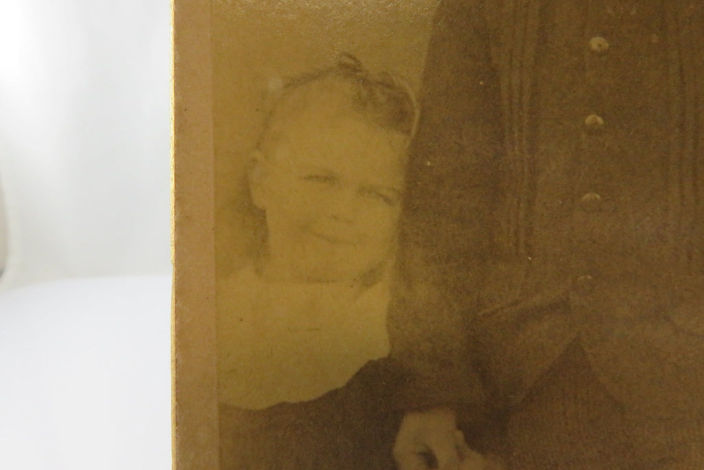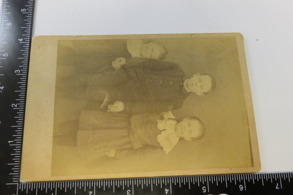 Antique Cabinet Card 1887 Boy and 2 Sisters holding hand Hidden Middle Finger