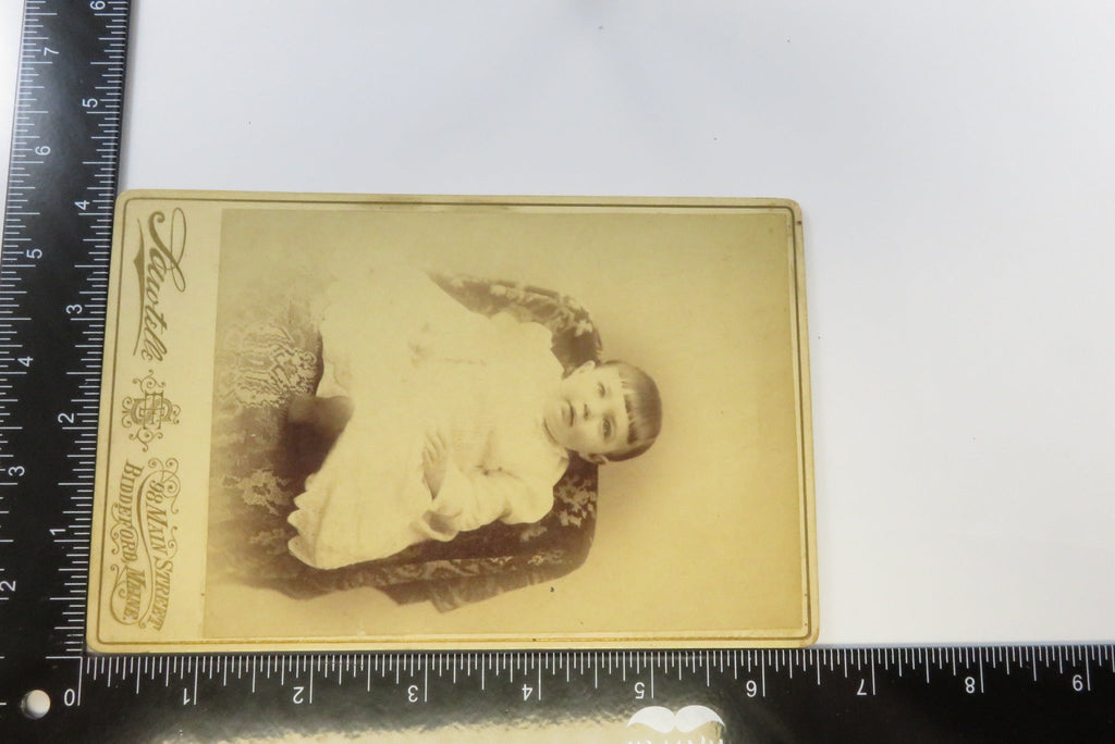 Antique Cabinet Card Cute Little Toddler in Chair Sawtelle Biddeford Maine