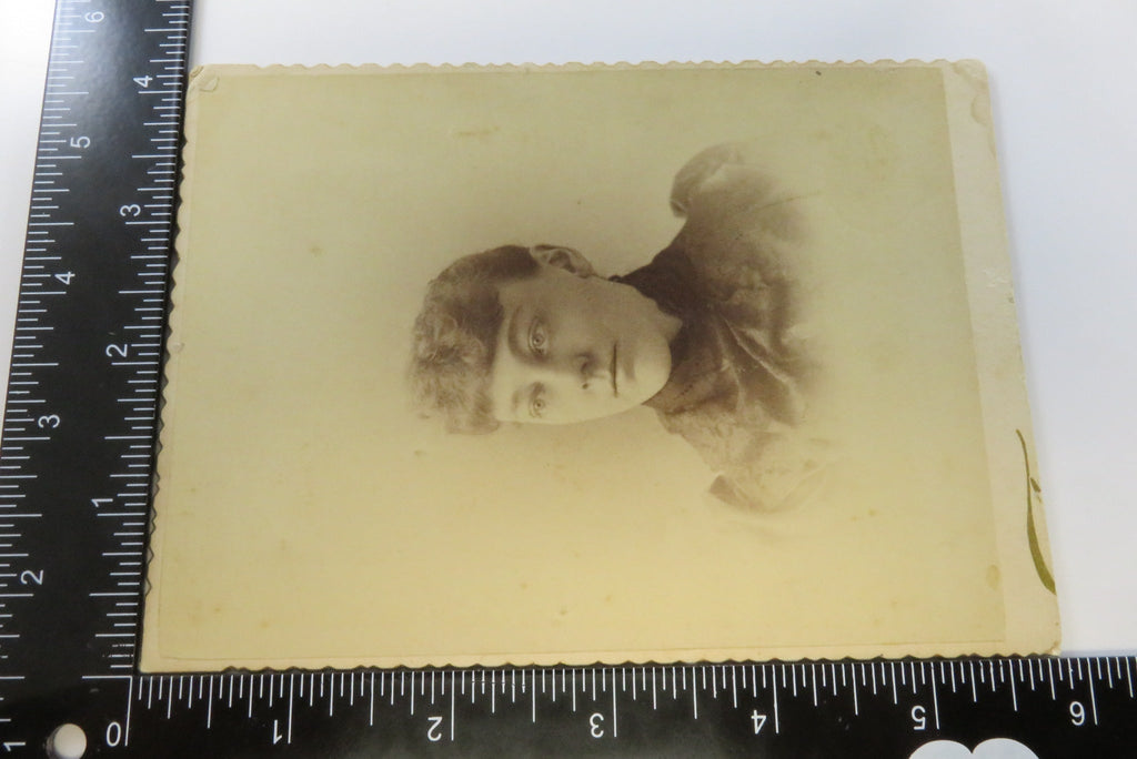 Antique Cabinet Card Woman Look Right Black Ruffles Cut Down Cabinet Card