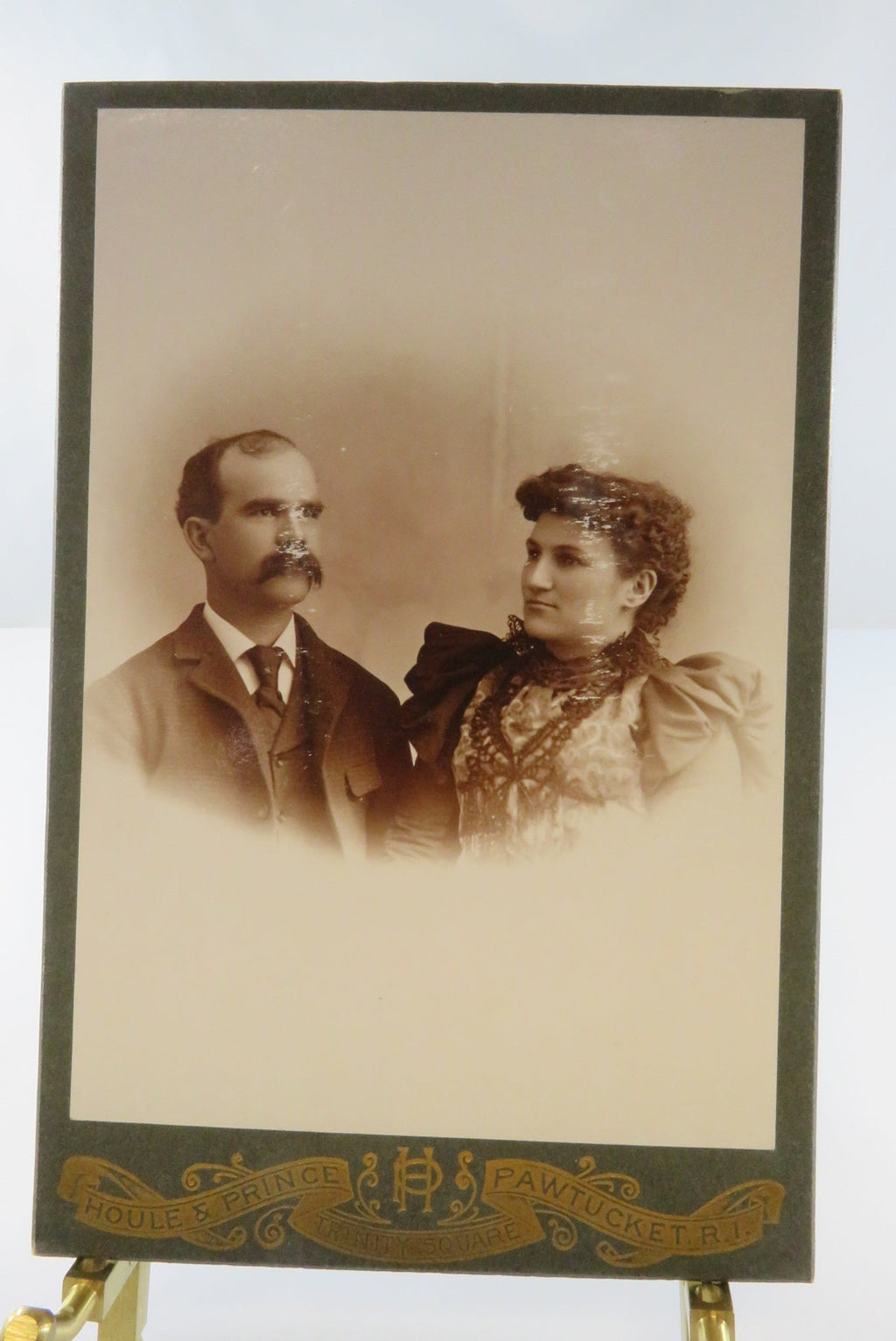 Antique Cabinet Card Man & Woman Houle & Prince Trinity Square Pawtucket